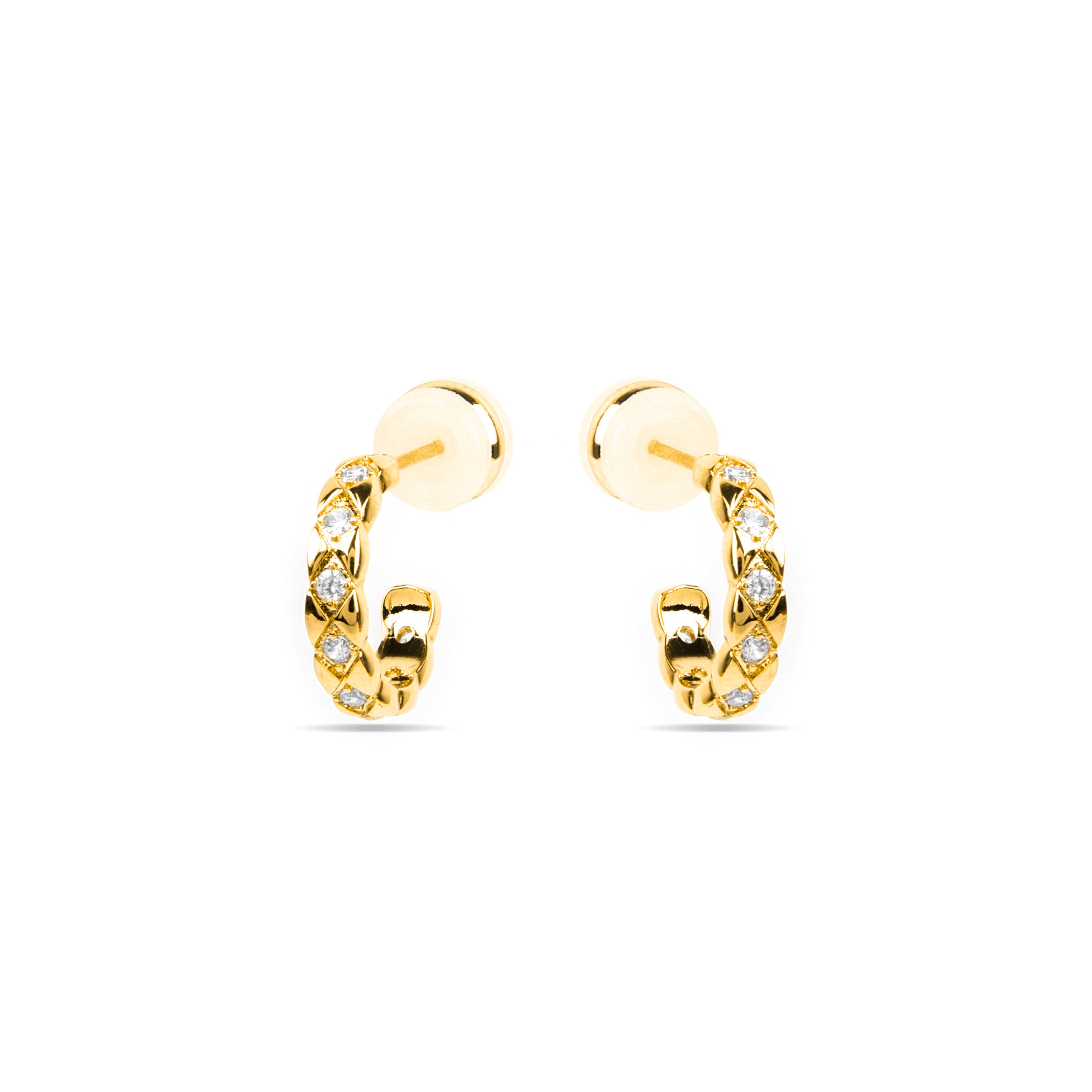 Brincos Efla com Zircónia Brilhante acabamento em ouro 18k. Essential encarna a simplicidade refinada, peças intemporais com linhas suaves e o brilho adicional das zircónias. Joias básicas e despretensiosas que são perfeitas para o uso diário, mas que também funcionam em ocasiões especiais.