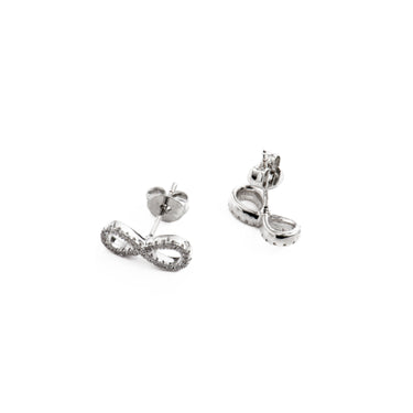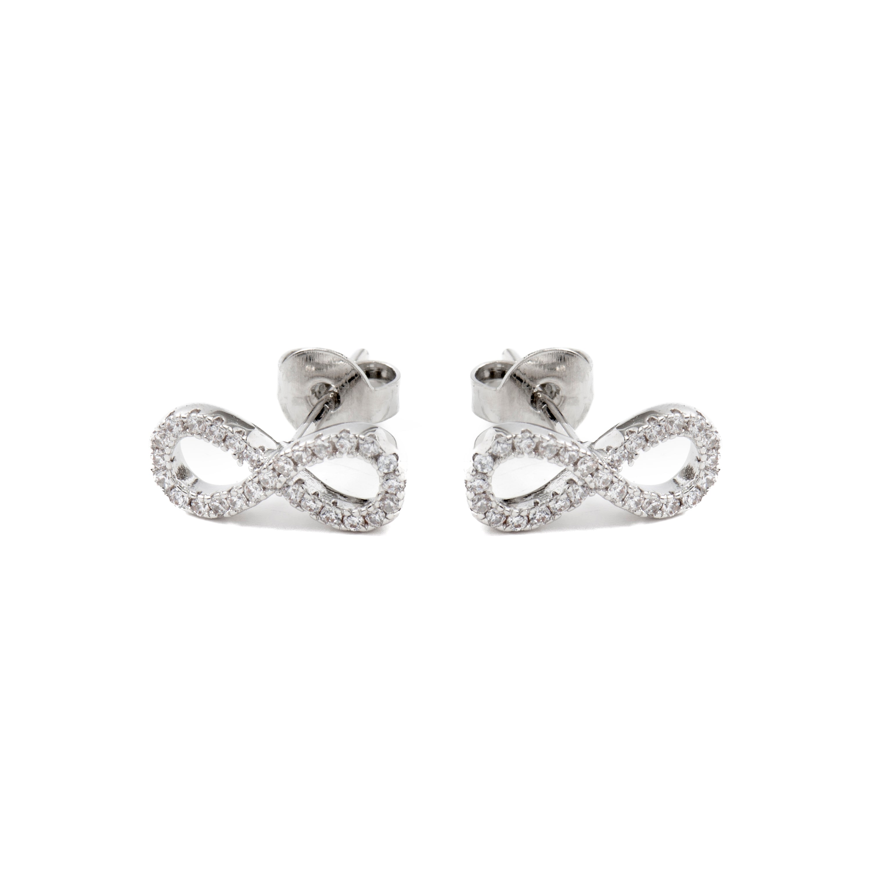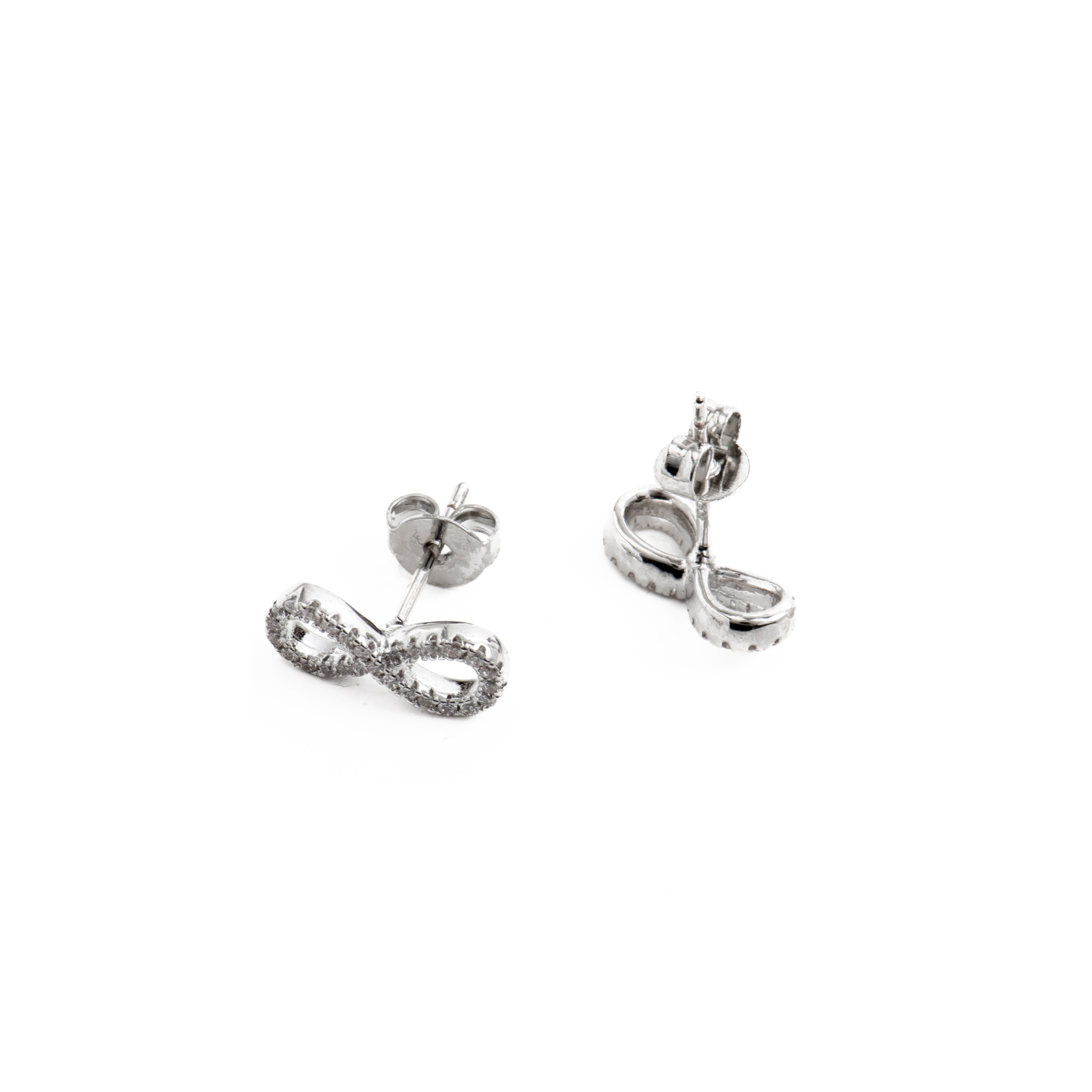 Brincos Infinity de Zircónia Brilhante com acabamento em prata. África Basic encarna a simplicidade refinada, peças intemporais com linhas suaves e o brilho adicional das zircónias. Joias básicas e despretensiosas que são perfeitas para o uso diário, mas que também funcionam em ocasiões especiais.