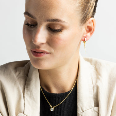 Brincos Remin de Zircónia Brilhante acabados em ouro amarelo 18k. Essential encarna a simplicidade refinada, peças intemporais com linhas suaves e o brilho adicional das zircónias. Joias básicas e despretensiosas que são perfeitas para o uso diário, mas que também funcionam em ocasiões especiais.