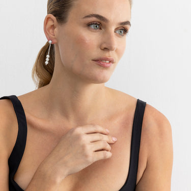 Brincos Galdin com Pérola Branca acabamento em prata. África torna-se a linha perfeita para mulheres com personalidade, que não têm medo de arriscar e exibir peças com carácter próprio.