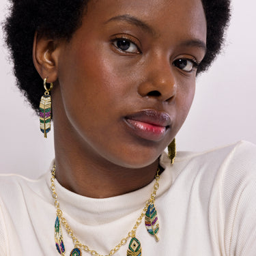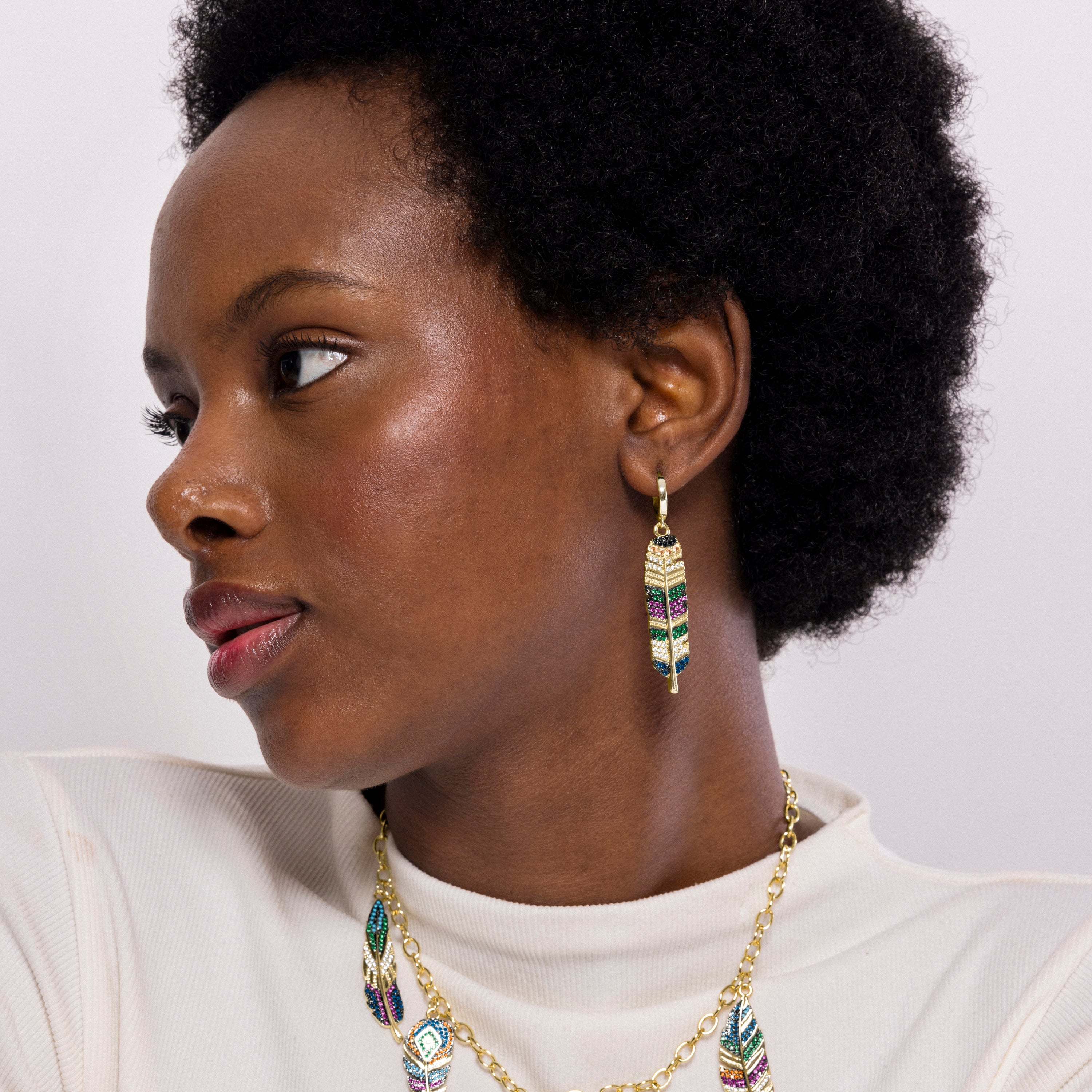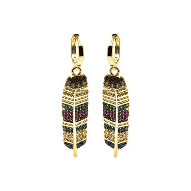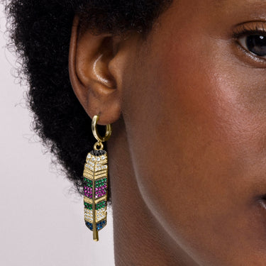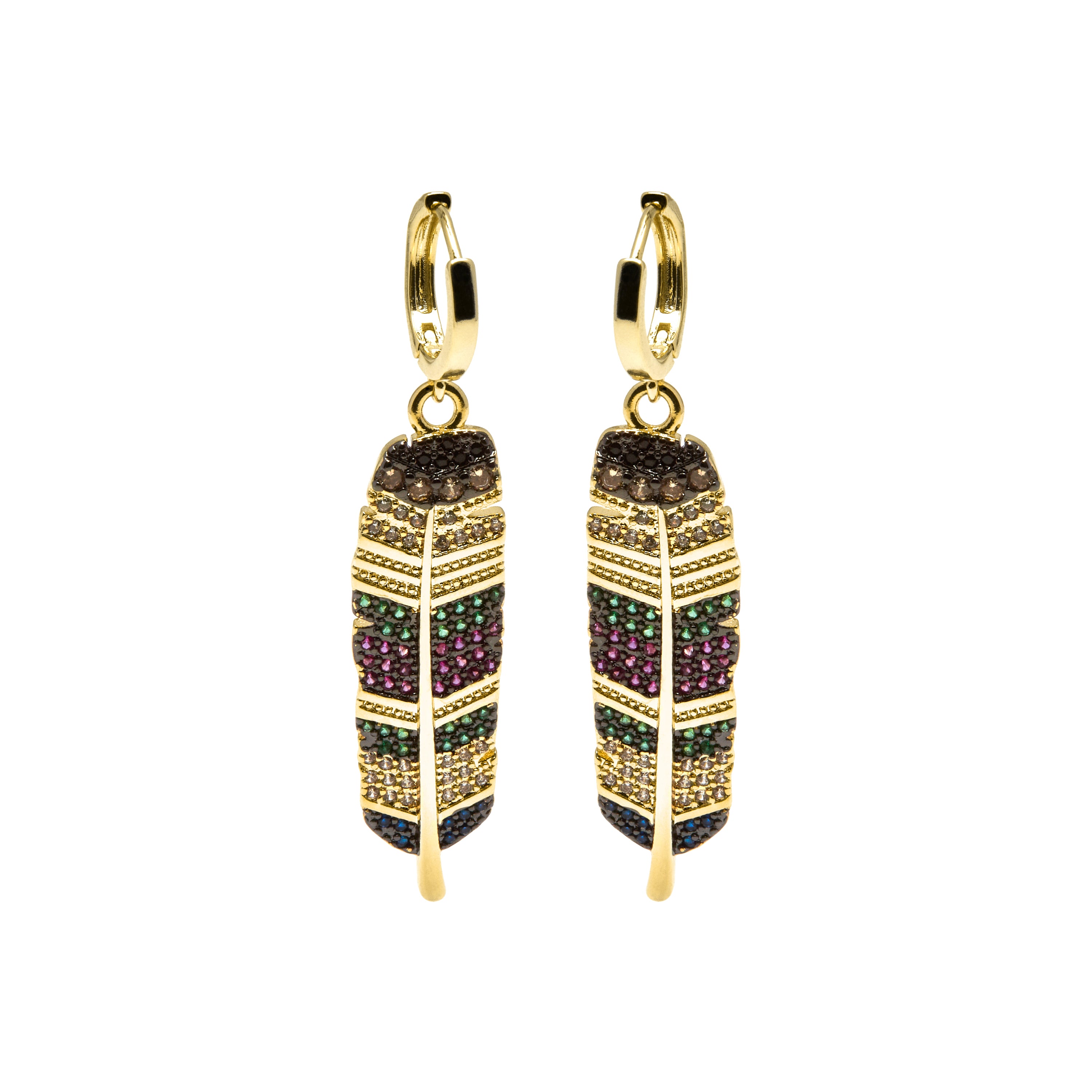 Brincos de metal Muisem com Zircónia Multicolor e acabamento em ouro amarelo 18k. O estilo Boho é uma estética de espírito livre que mistura diferentes culturas e expressões artísticas num estilo eclético com ênfase nos elementos orgânicos e na natureza.