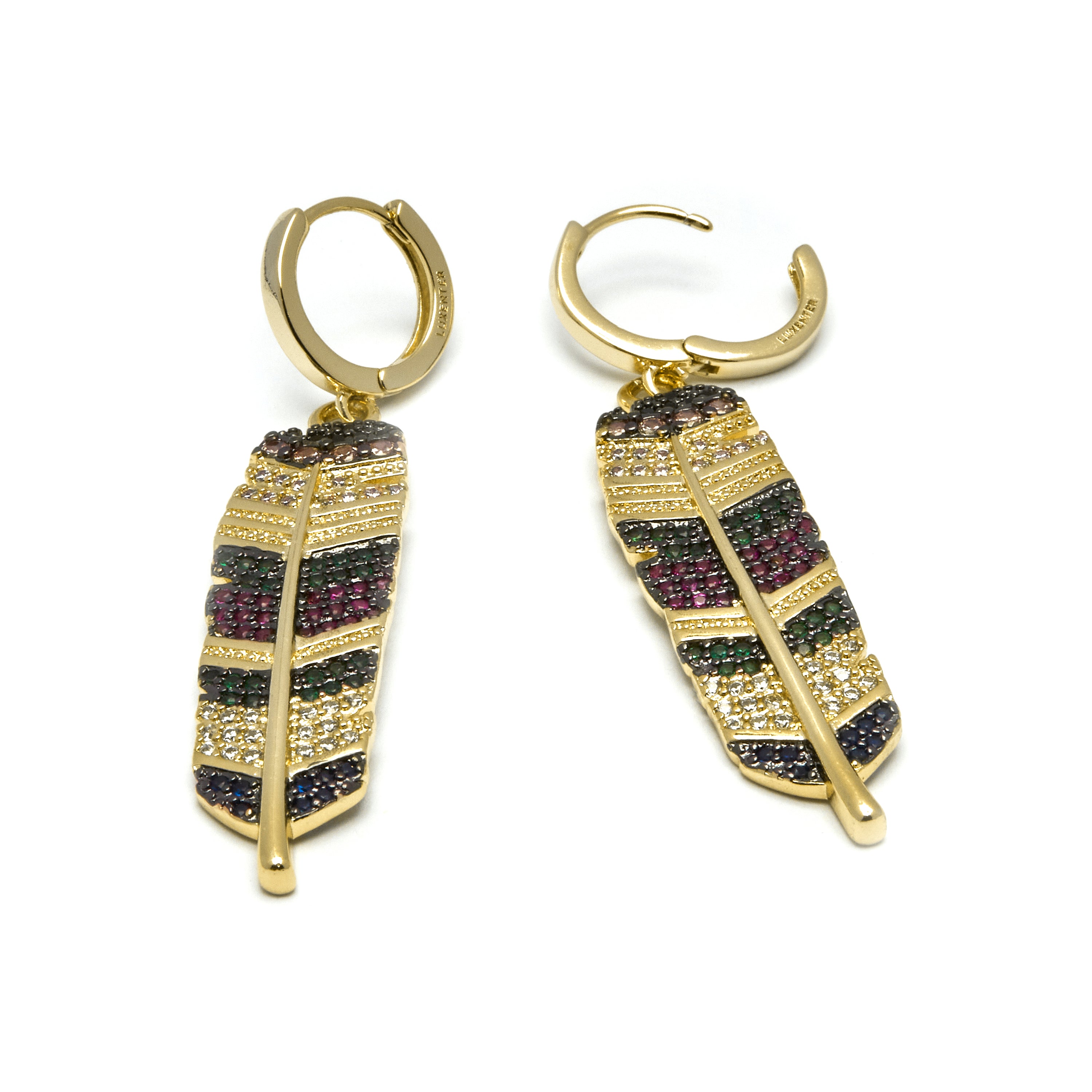 Brincos de zircónia multicolor com acabamento em ouro amarelo 18K - Muisem