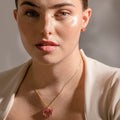 Colar Hadre de Prata de Lei 925 e Zircónia Rubi com acabamento em ouro 18k. Trendy representa as tendências chave no mundo da moda. A nossa linha mais espontânea, com um espírito moderno marcado que se concentra em joias repletas de cor, destacando o uso de pedras naturais e designs em forma de amuletos e talismãs.