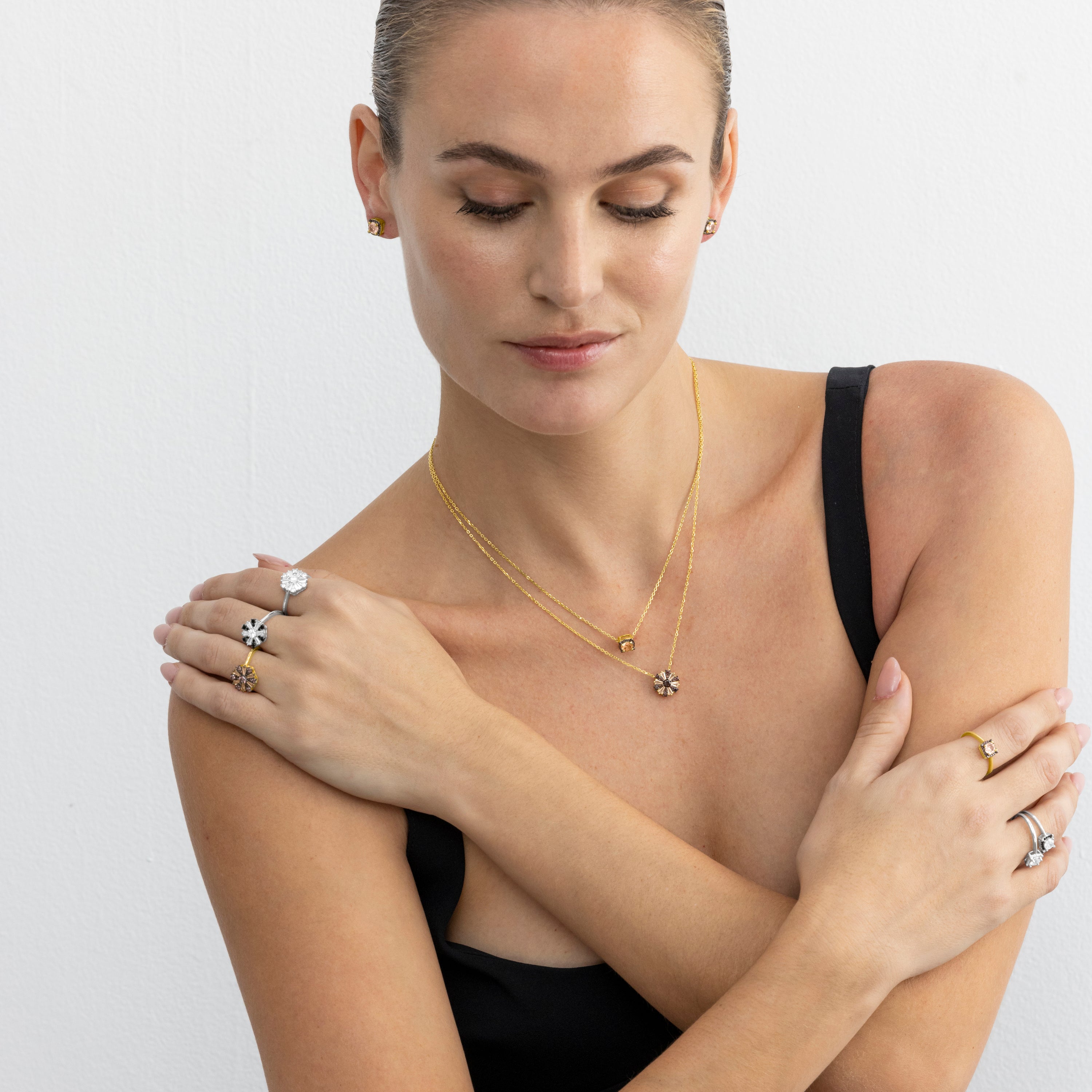 Colar Lehak de Prata de Lei 925 e Zircónia Castanha com acabamento em ouro 18k. Momentos para brilhar combina na perfeição designs que resistem ao passar do tempo com joias mais inovadoras. Joias elegantes e sofisticadas para brilhar em ocasiões especiais.