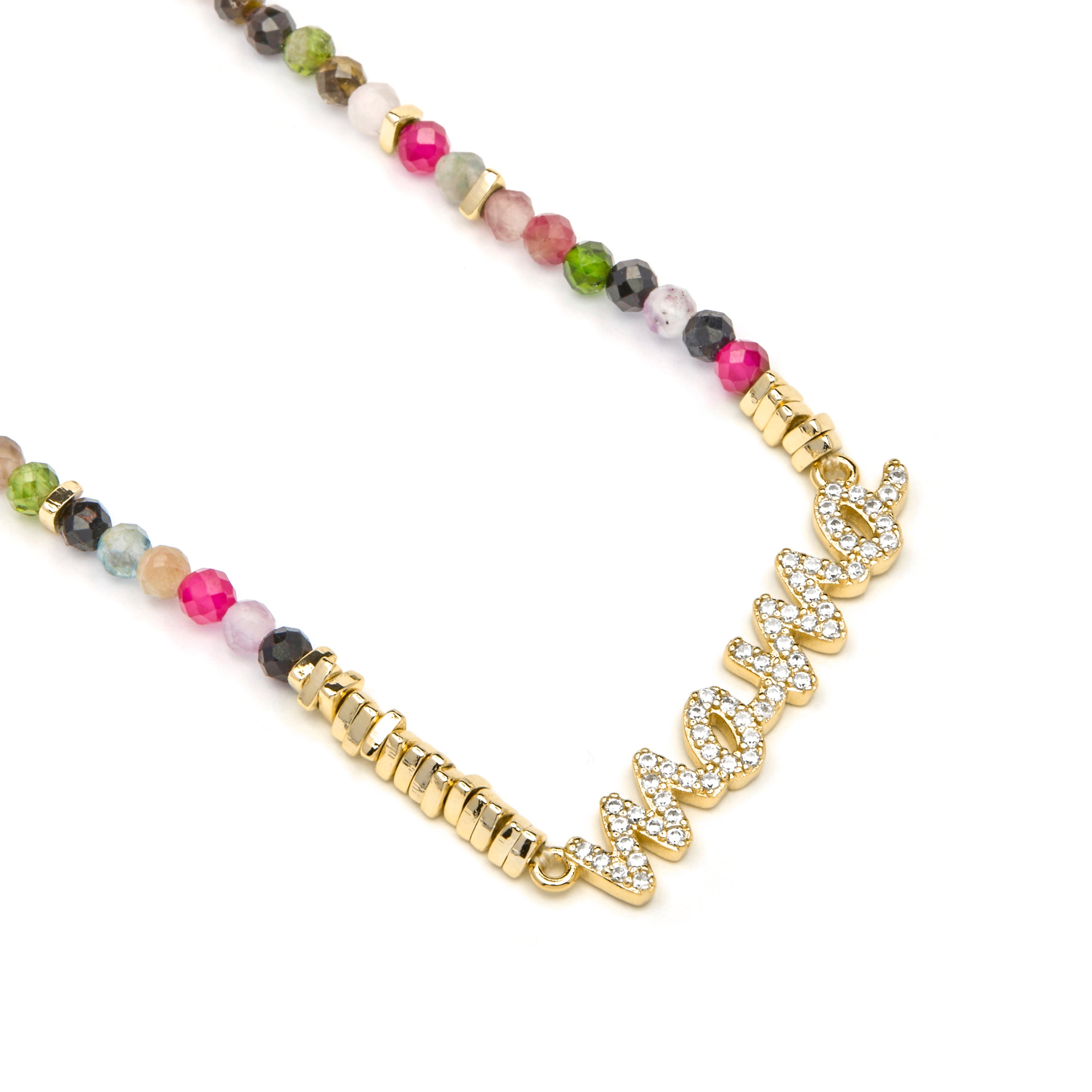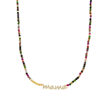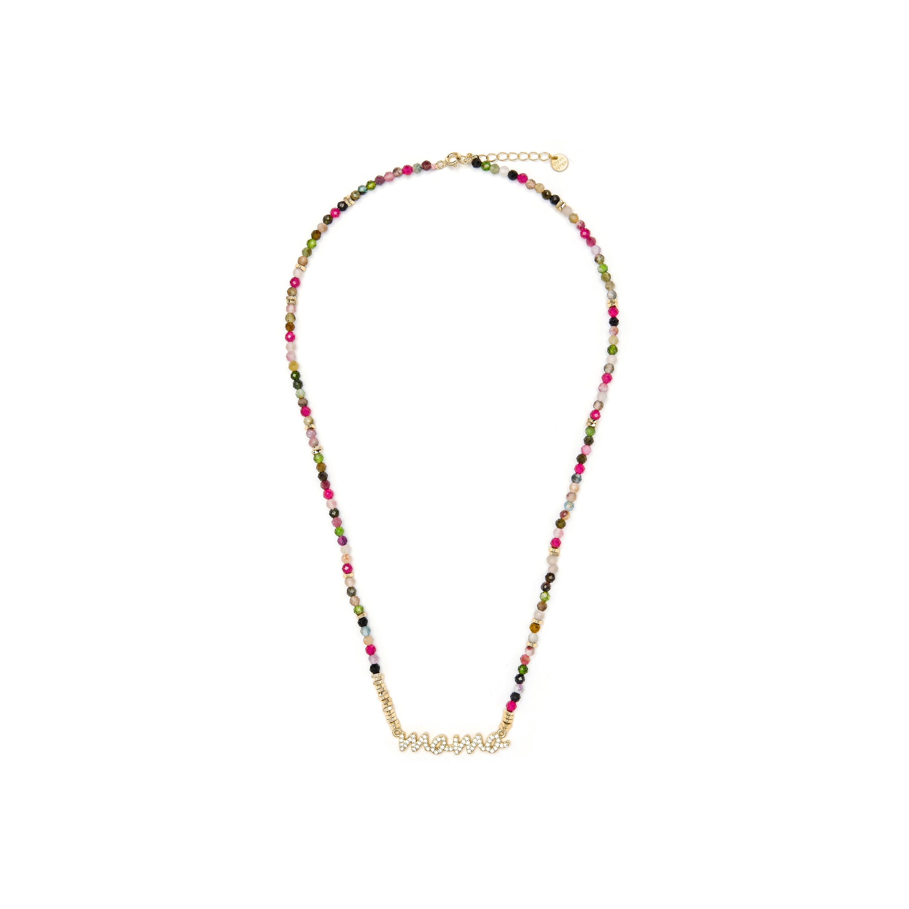 Colar Mama em Prata de Lei 925 e Turmalina Multicolor com acabamento em ouro amarelo de 18k