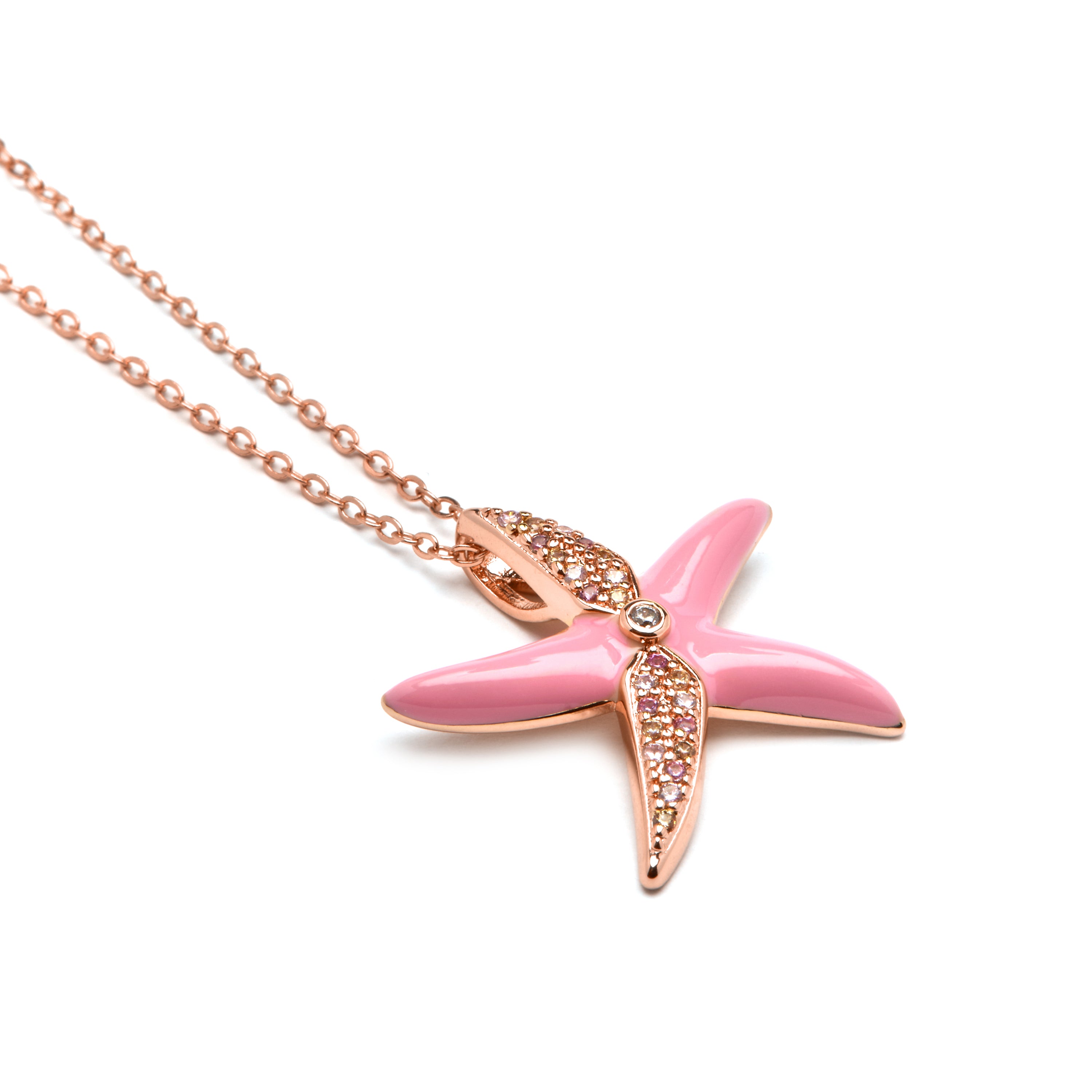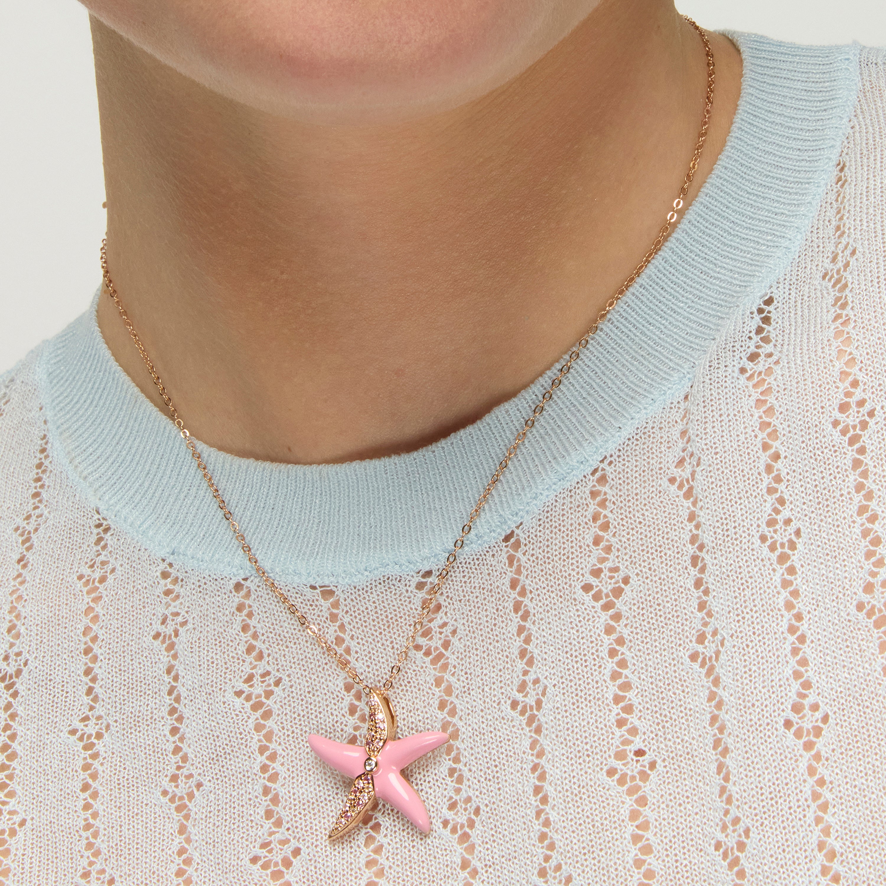 Colar de Prata de Lei 925 e Lacado Rosa com acabamento em ouro amarelo de 18k - Tliak