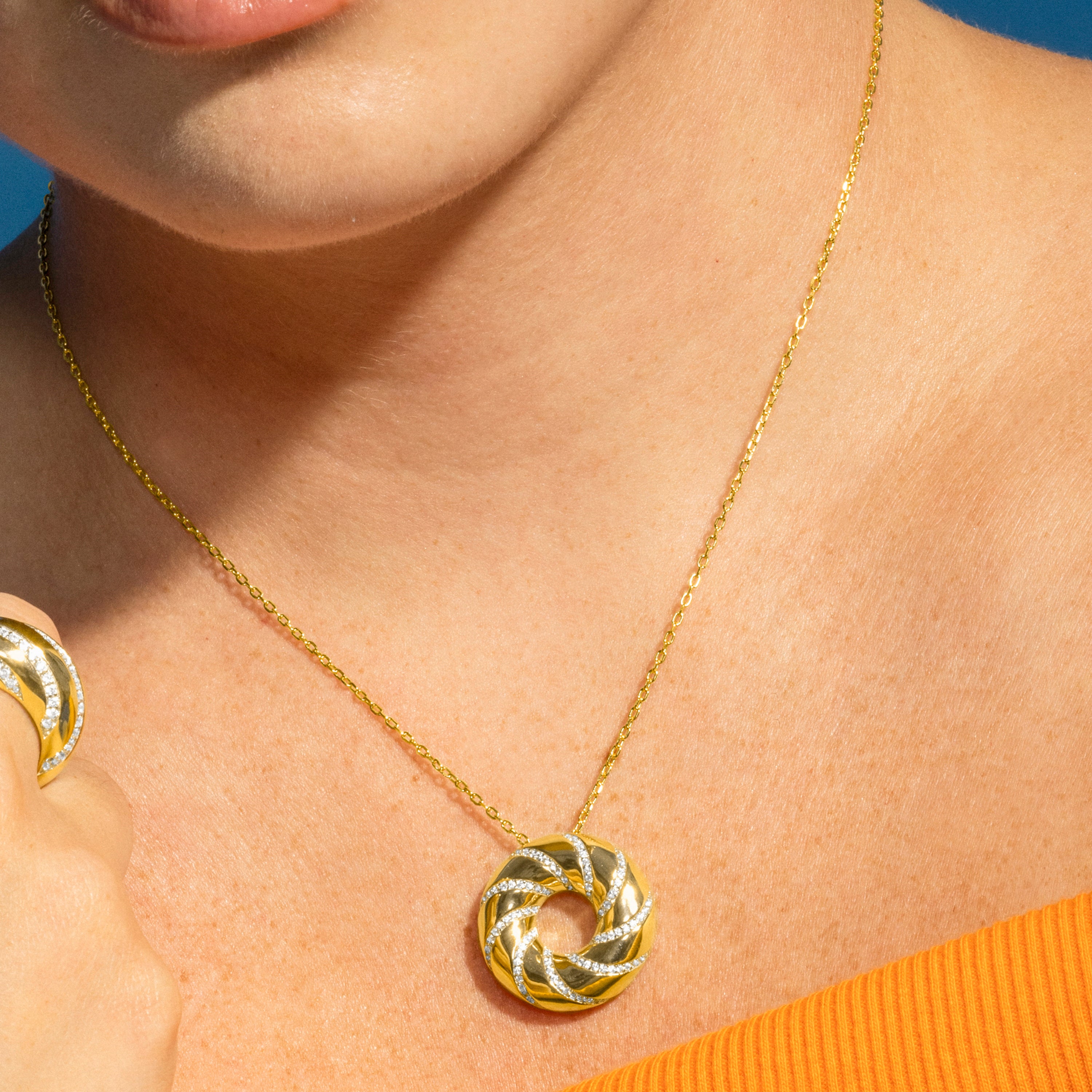 Colar Vikai de Prata de Lei 925 e Zircónia Brilhante com acabamento em ouro 18k. Momentos para brilhar combina na perfeição designs que resistem ao passar do tempo com joias mais inovadoras. Joias elegantes e sofisticadas para brilhar em ocasiões especiais.