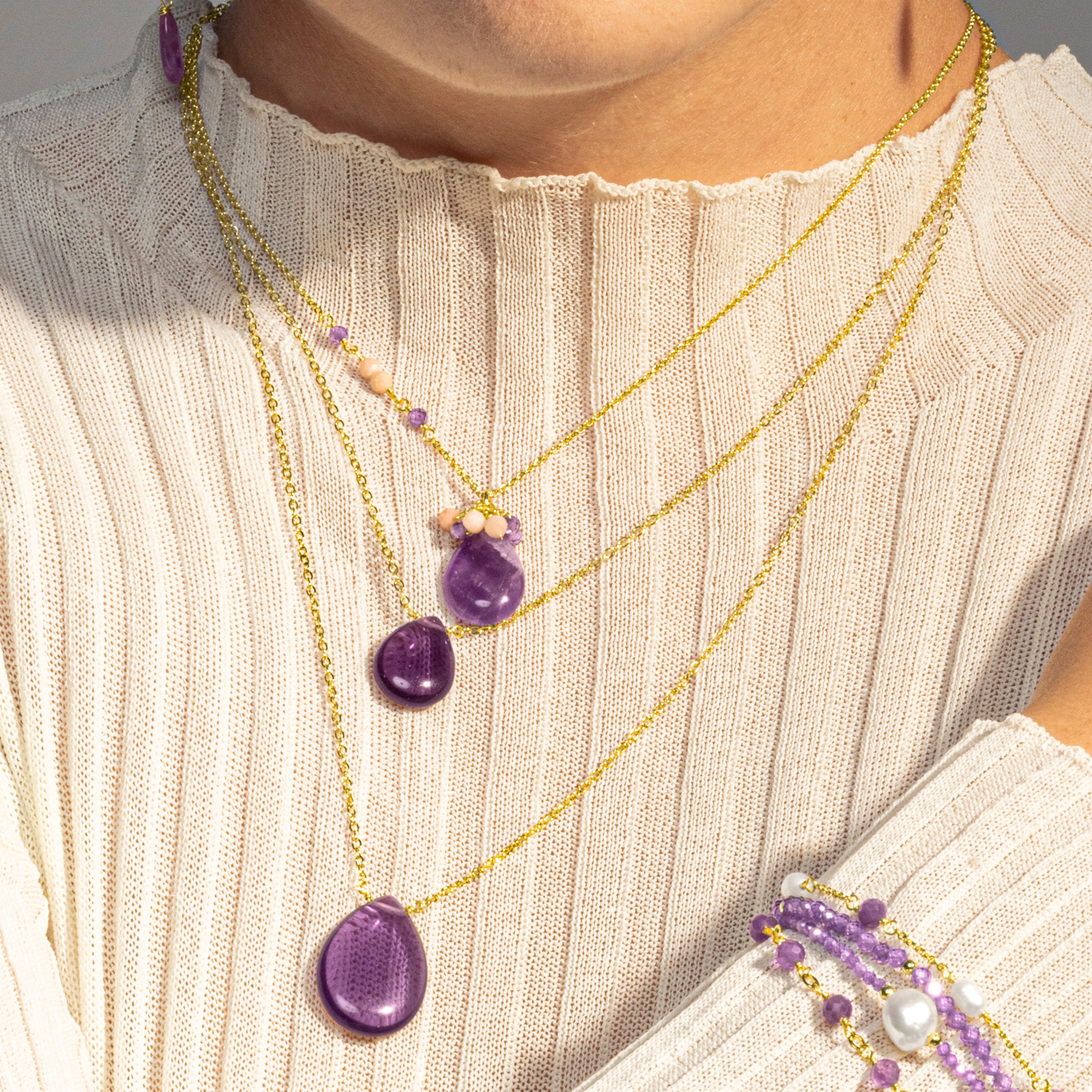Colar de Ametista Natural acabado em ouro amarelo 18K - Adak