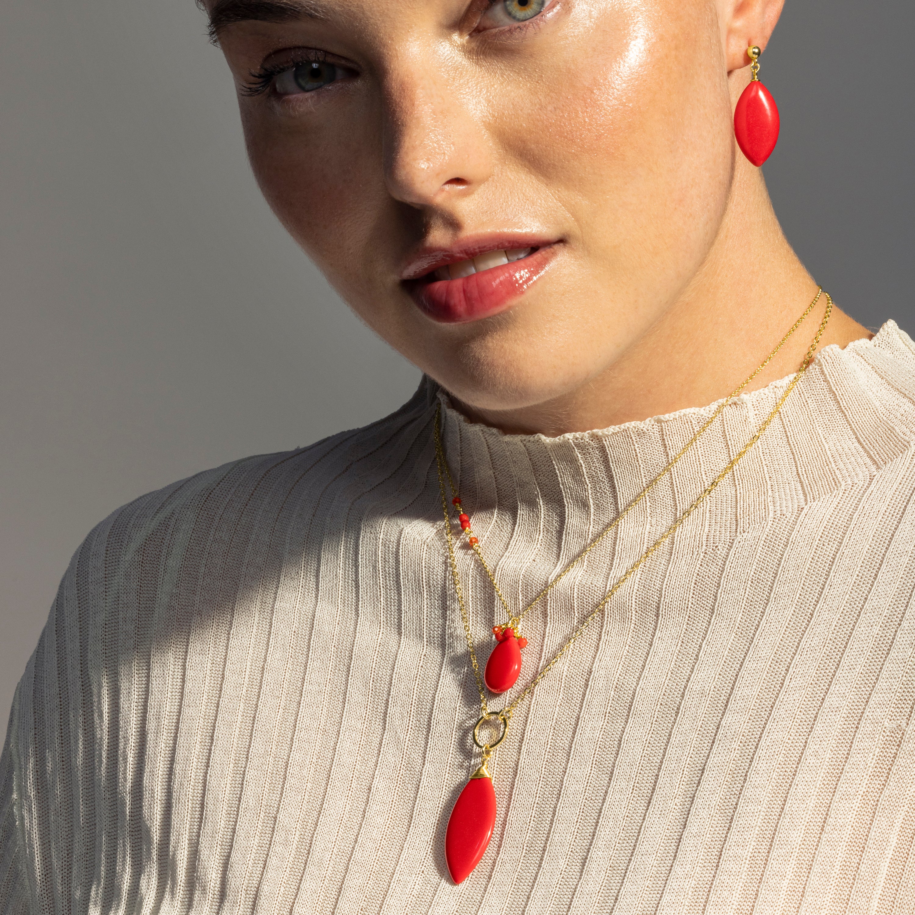 Colar de Coral acabado em ouro amarelo 18K - Adak