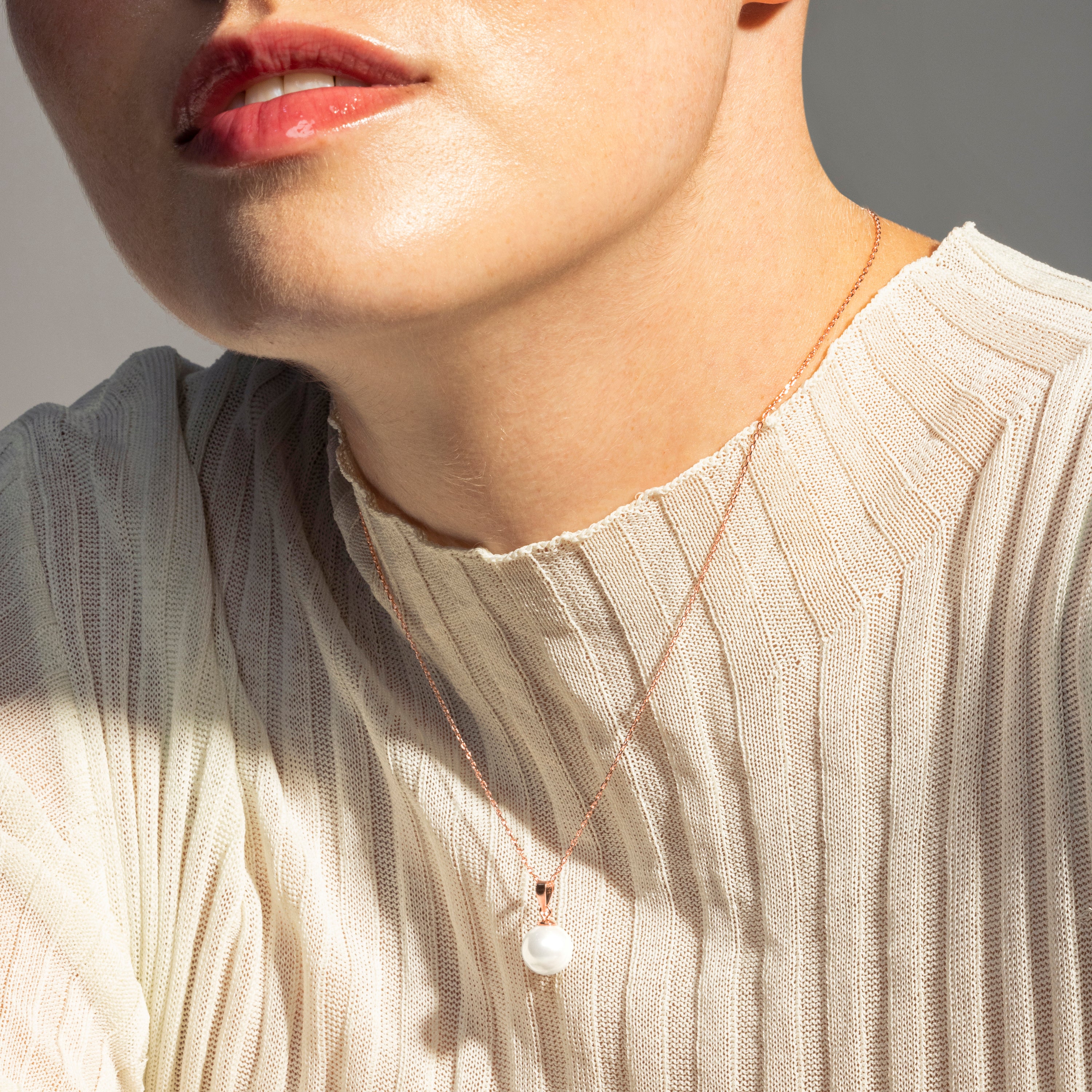 Colar de Prata de Lei 925 com Pérola Branca acabamento em ouro rosa 18K - Geel