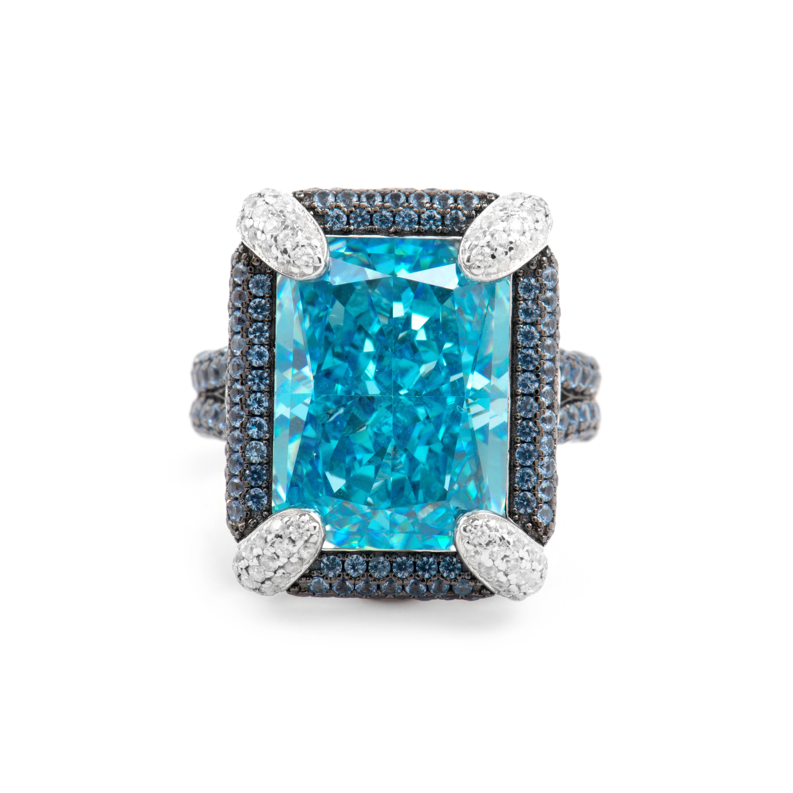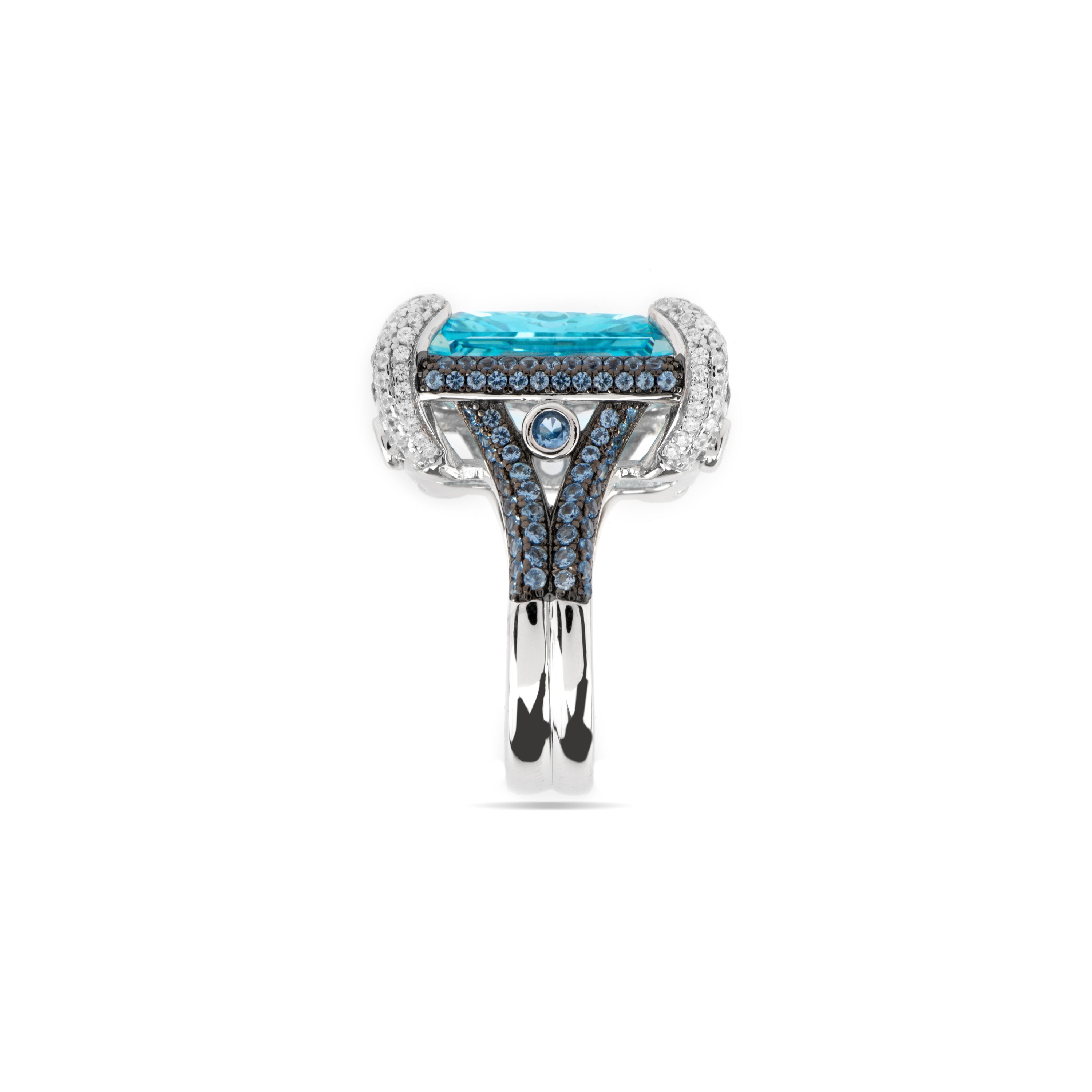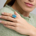 Anel de Prata de Lei 925 e Zircónia Água-marinha acabamento ródio - Liwi