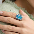 Anel Liwi de Prata de Lei 925 e Zircónia Água-marinha com acabamento em ródio