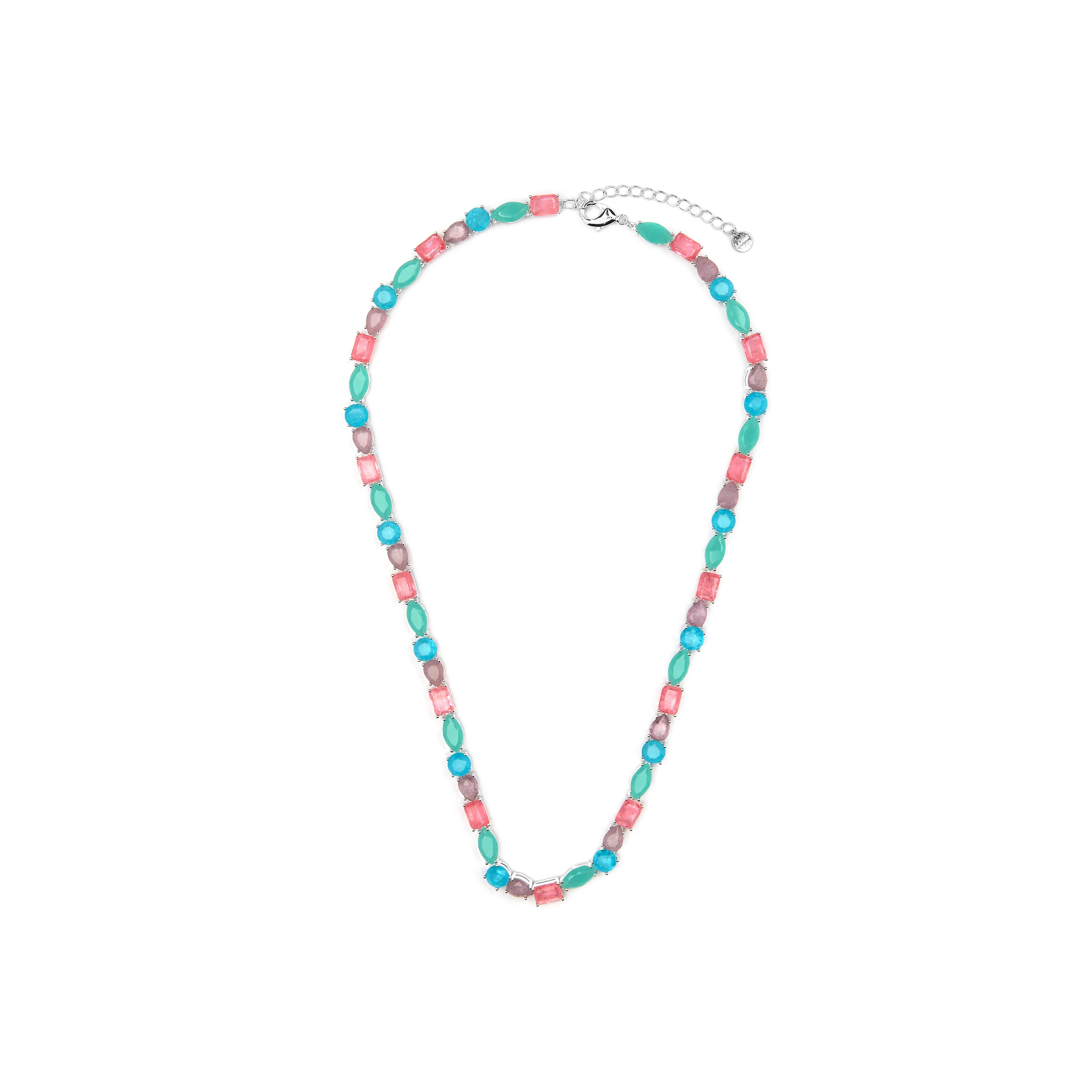 Colar de Prata de Lei 925 e Quartzo Hidrotermal Multicolor com acabamento em ródio - Larec