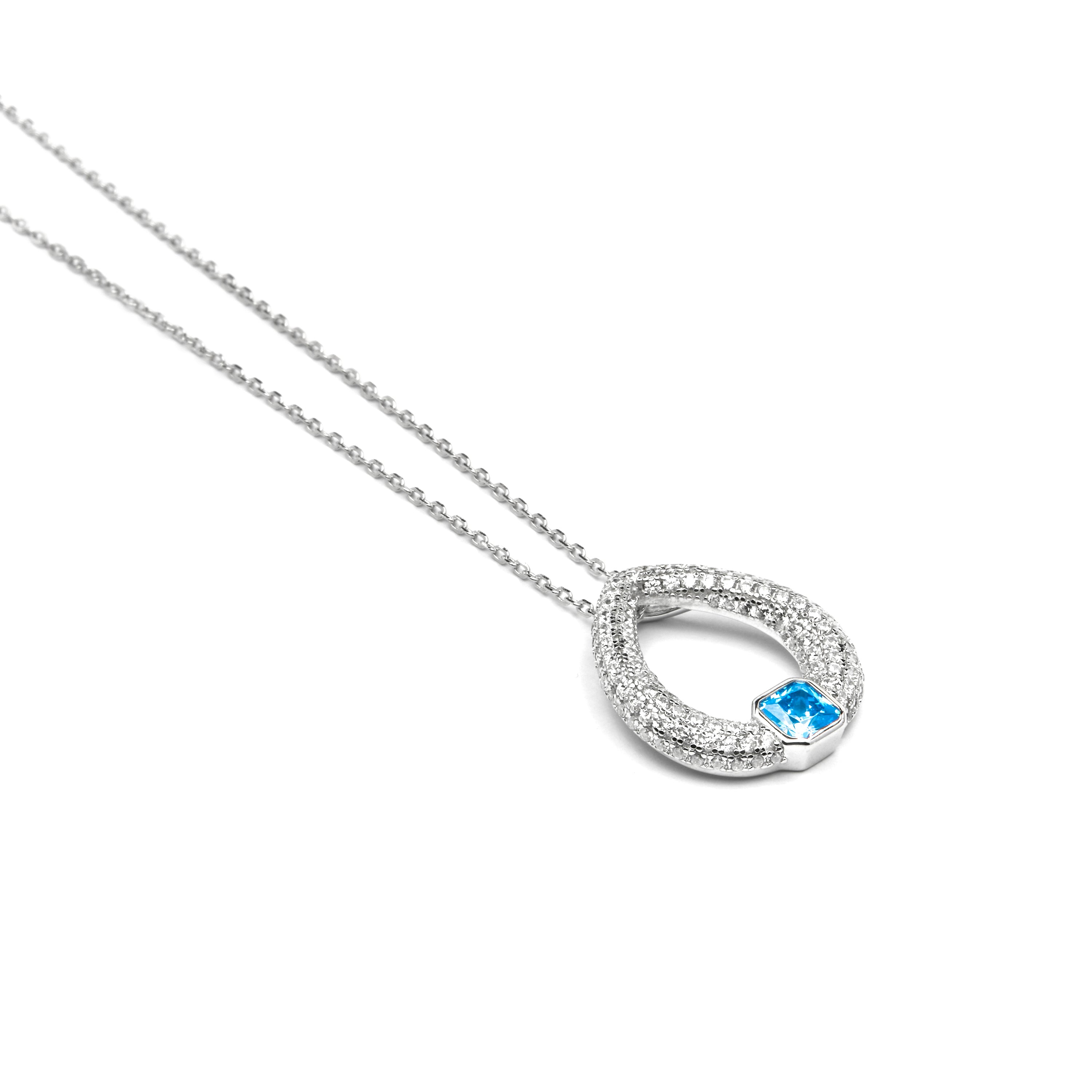 Colar de Prata de Lei 925 e Zircónia Água-marinha acabamento ródio - Uzi