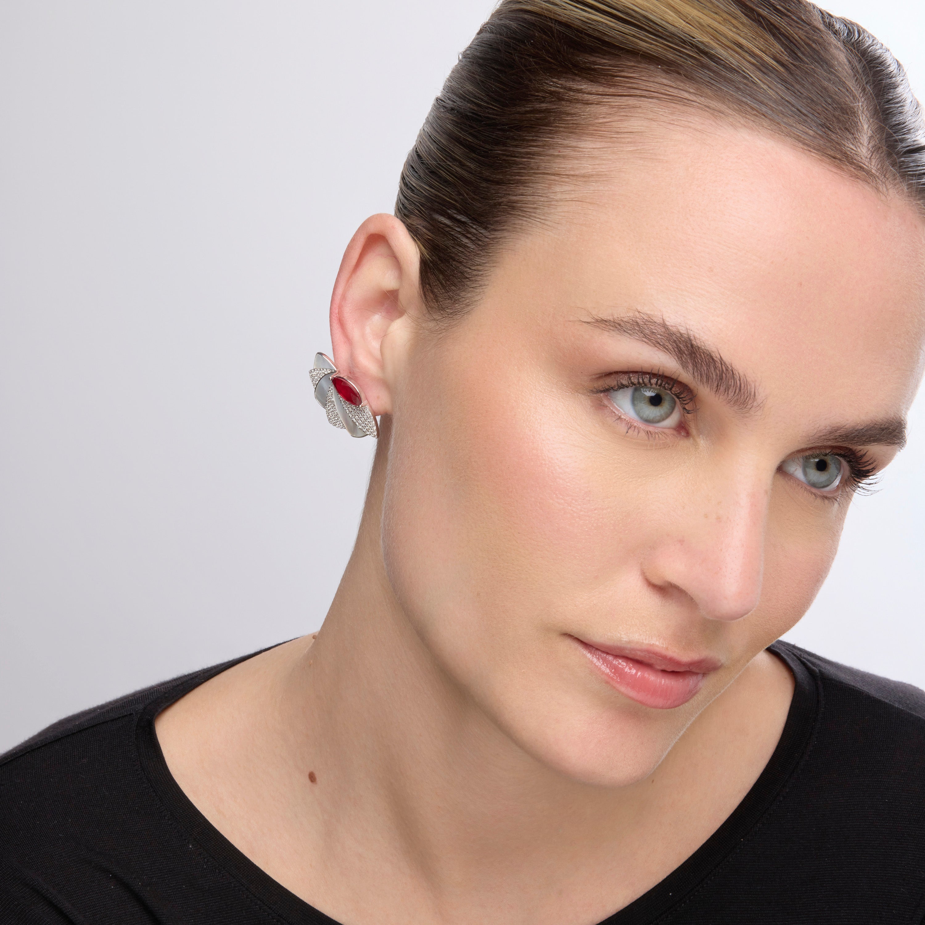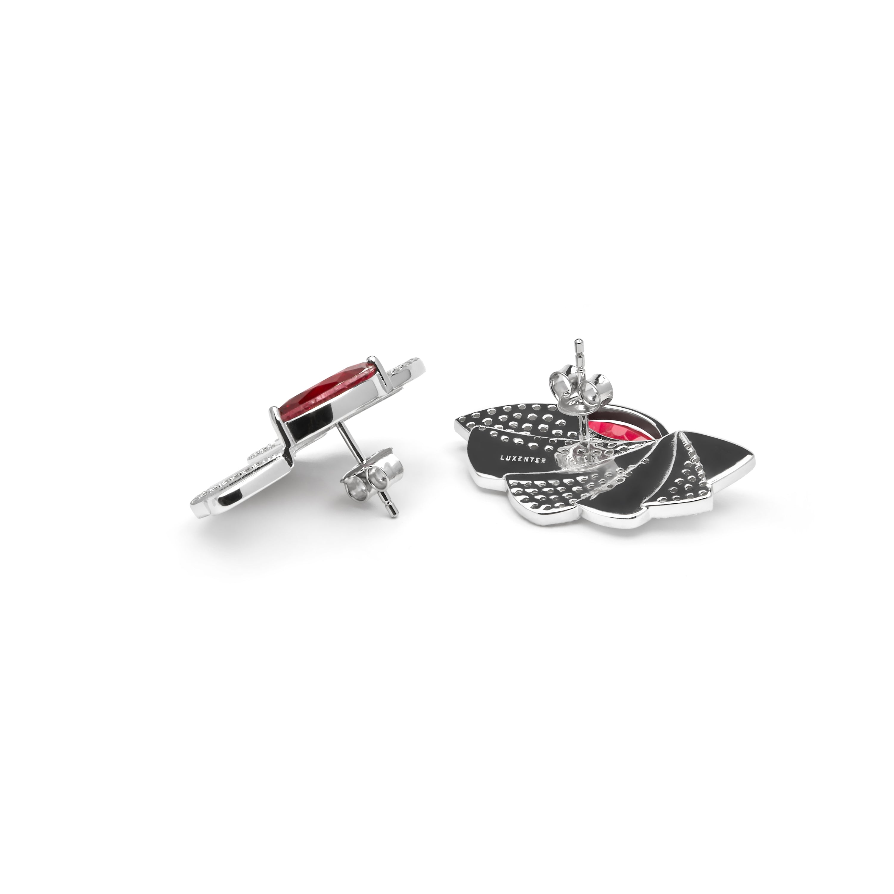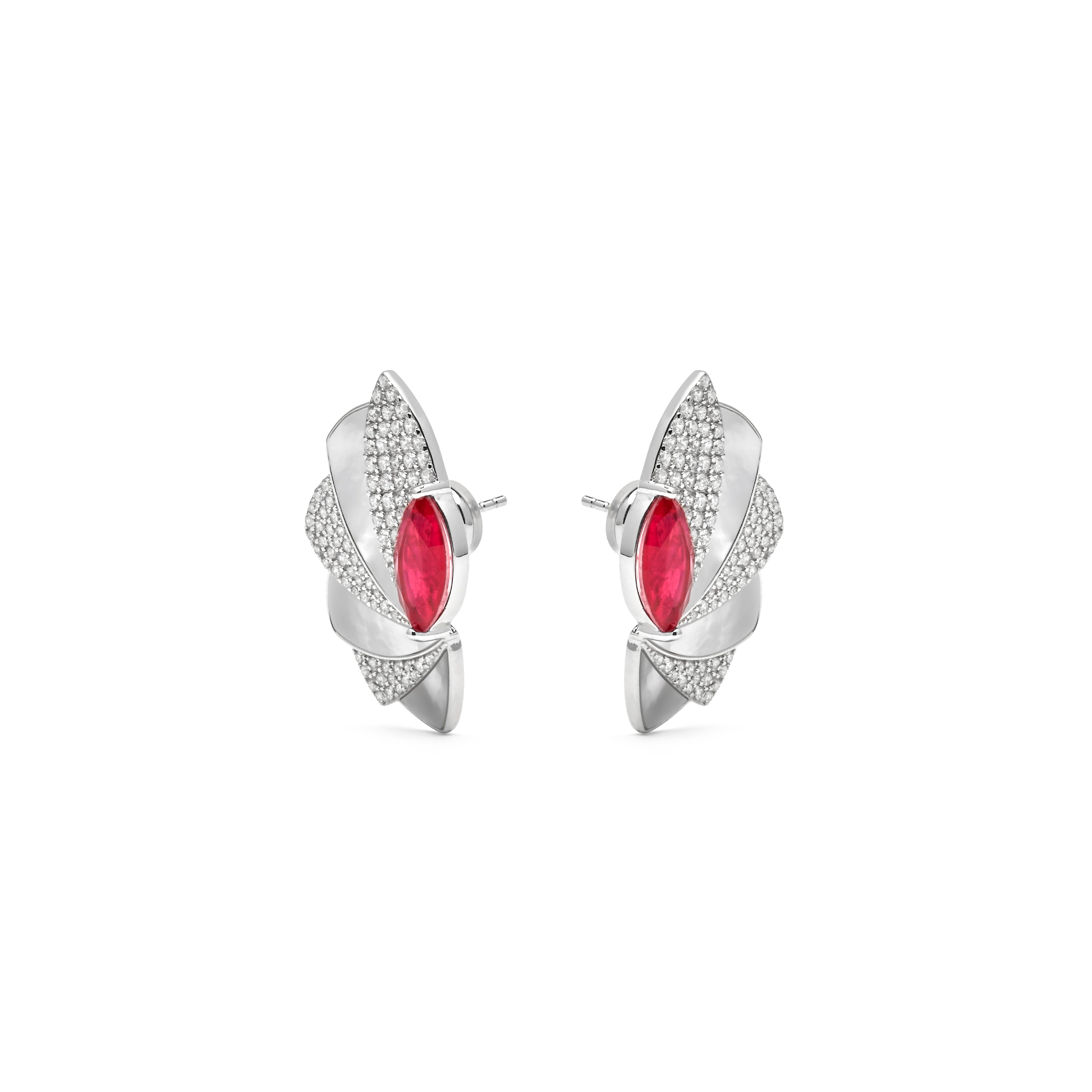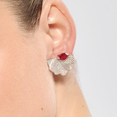 Brincos de Prata de Lei 925 e Quartzo Hidrotermal Cereja com acabamento em ródio