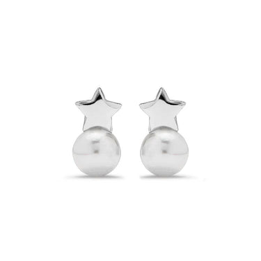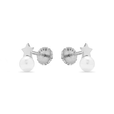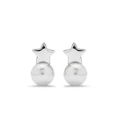 Brincos de Prata de Lei 925 com Pérola Branca acabados em ródio - Grimbei