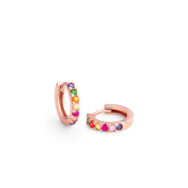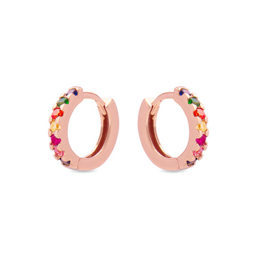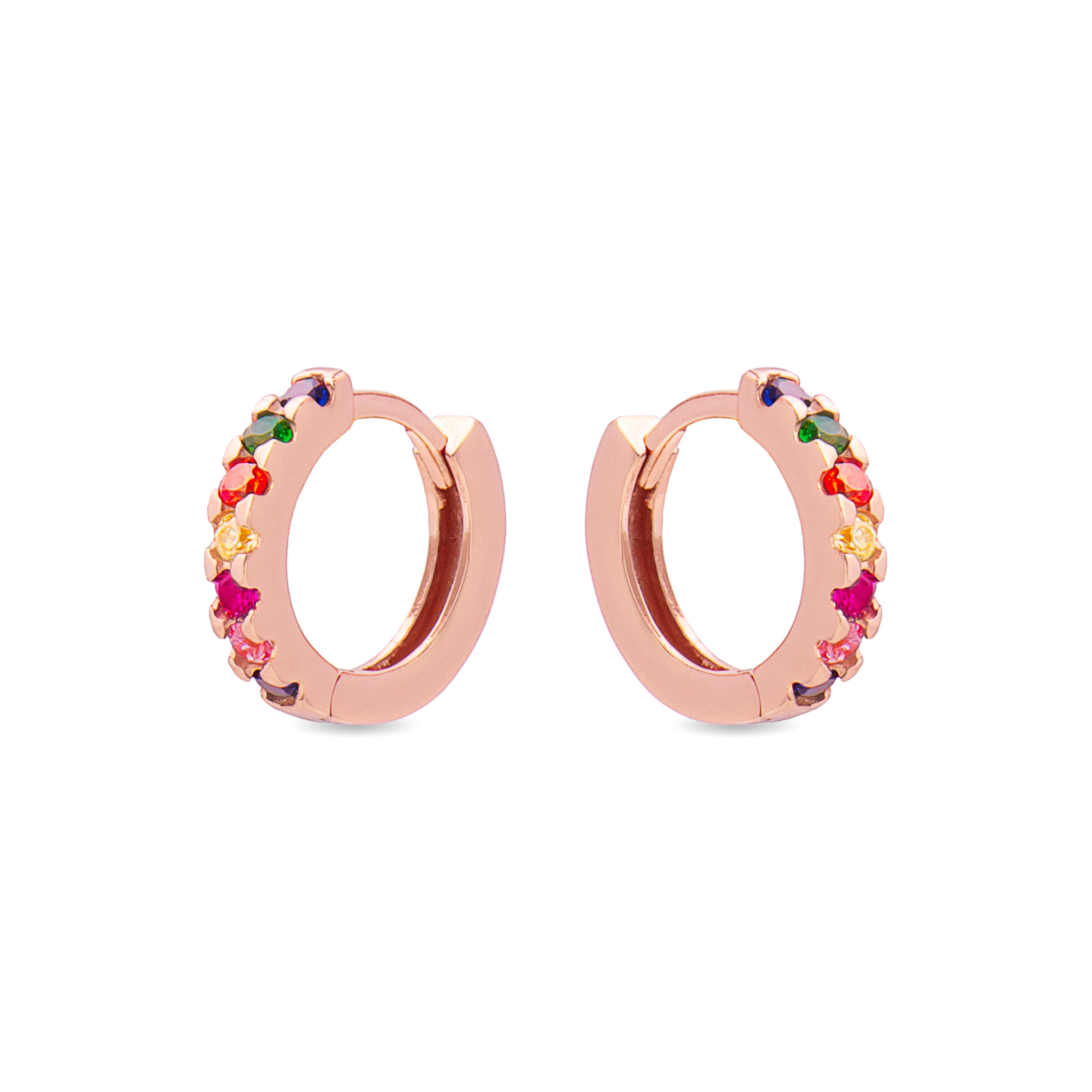 Brincos de 9mm em Prata de Lei 925 com Zircónia Multicolor, acabamento em ródio - Meri