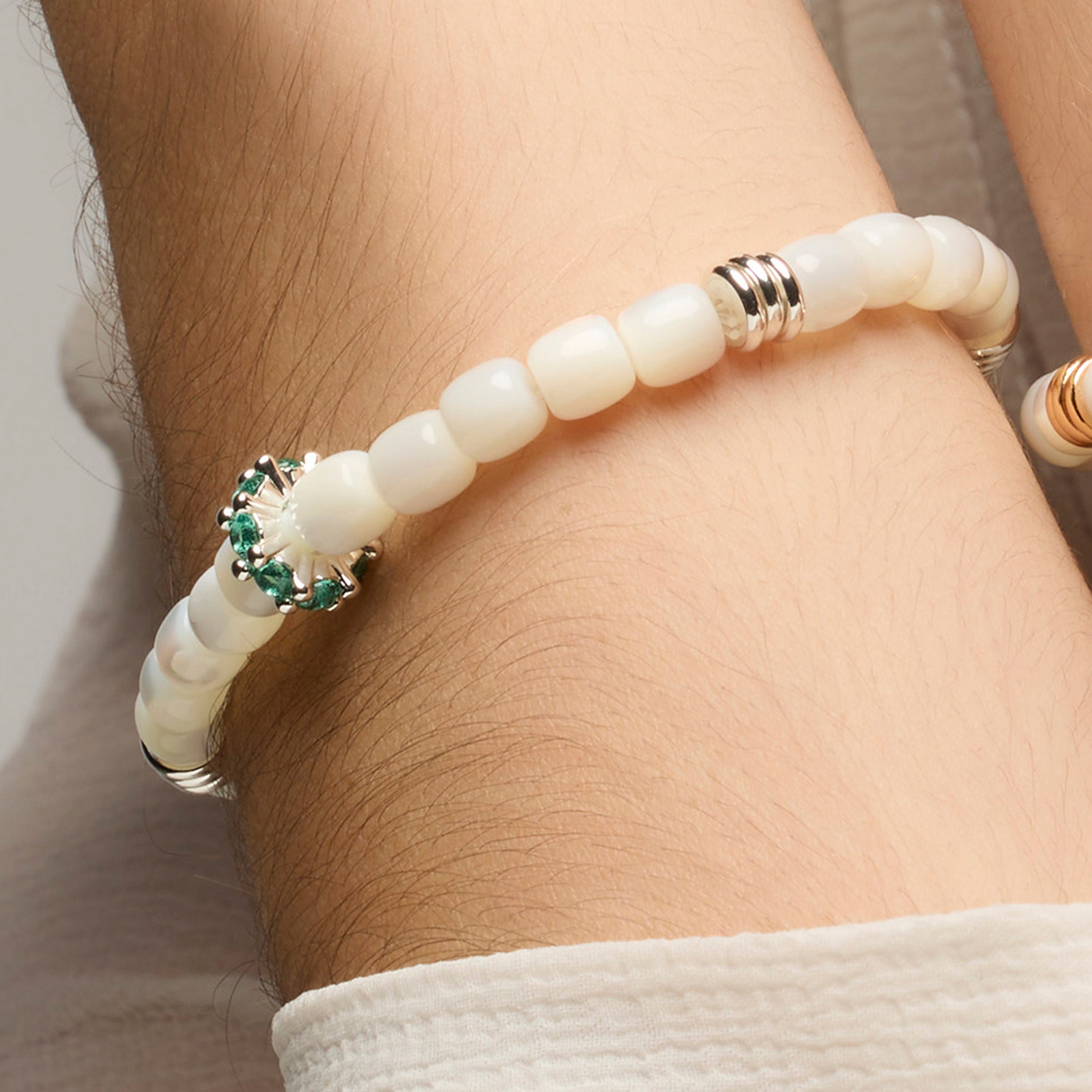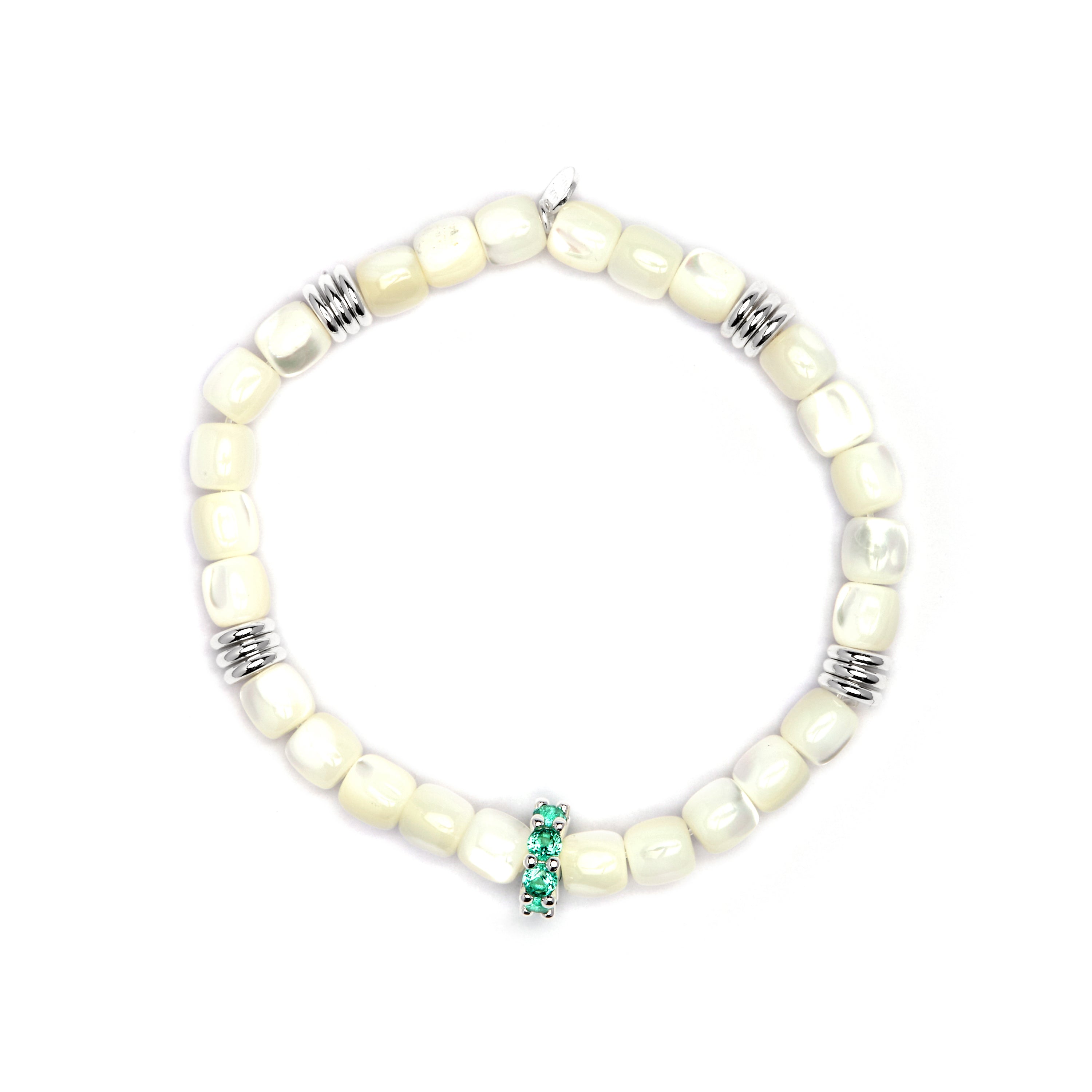 Pulseira Fyro de Prata de Lei 925 e Madrepérola Branca com acabamento em ródio