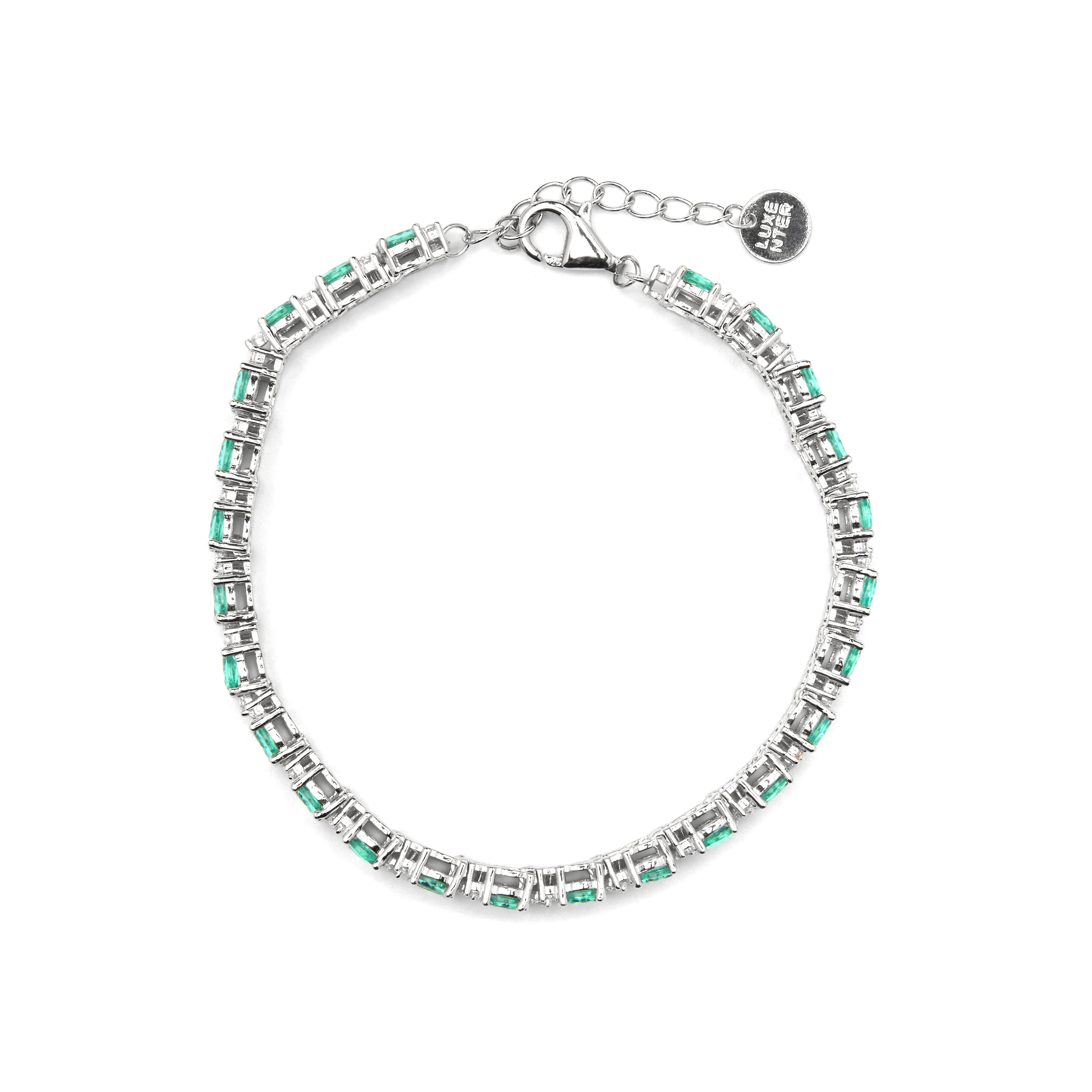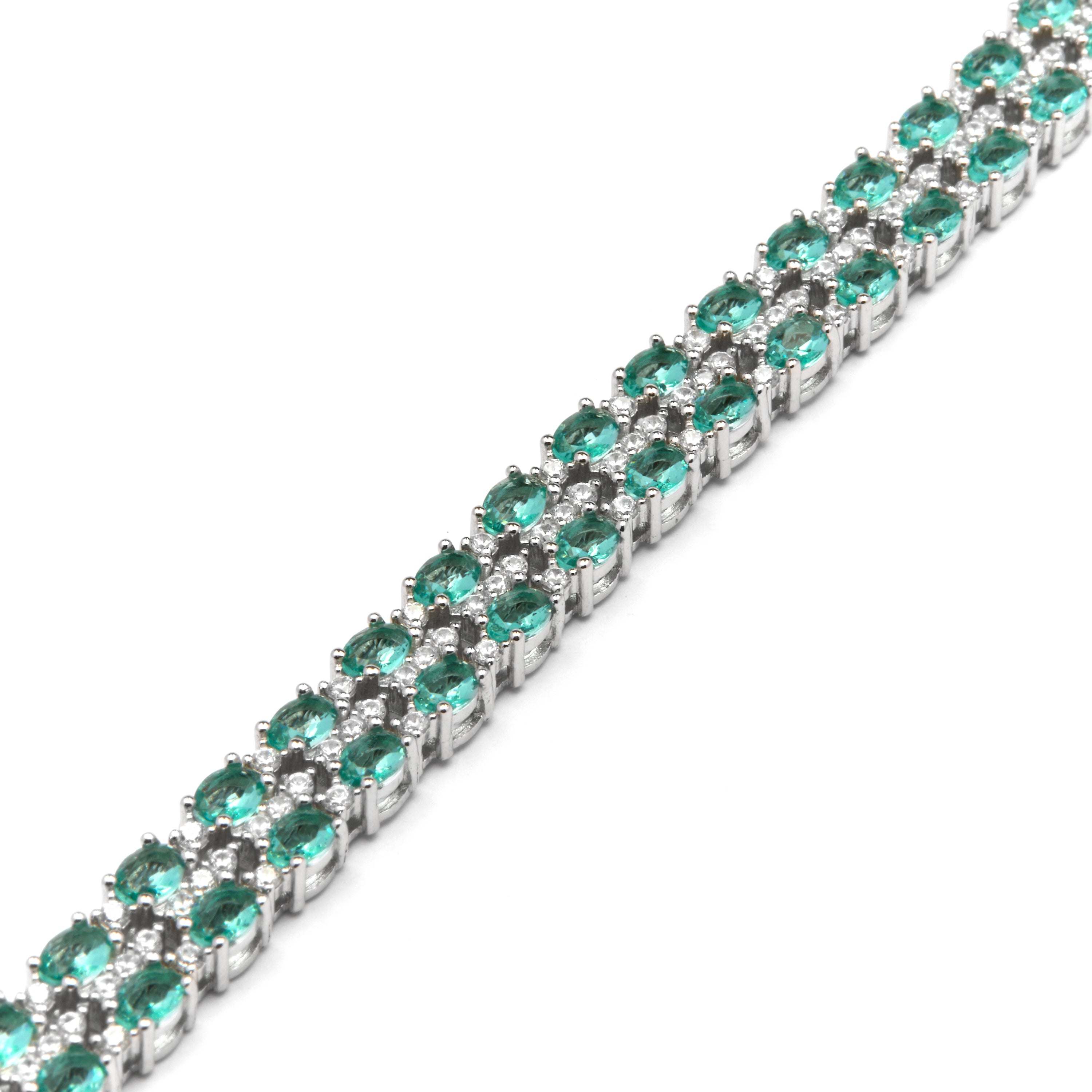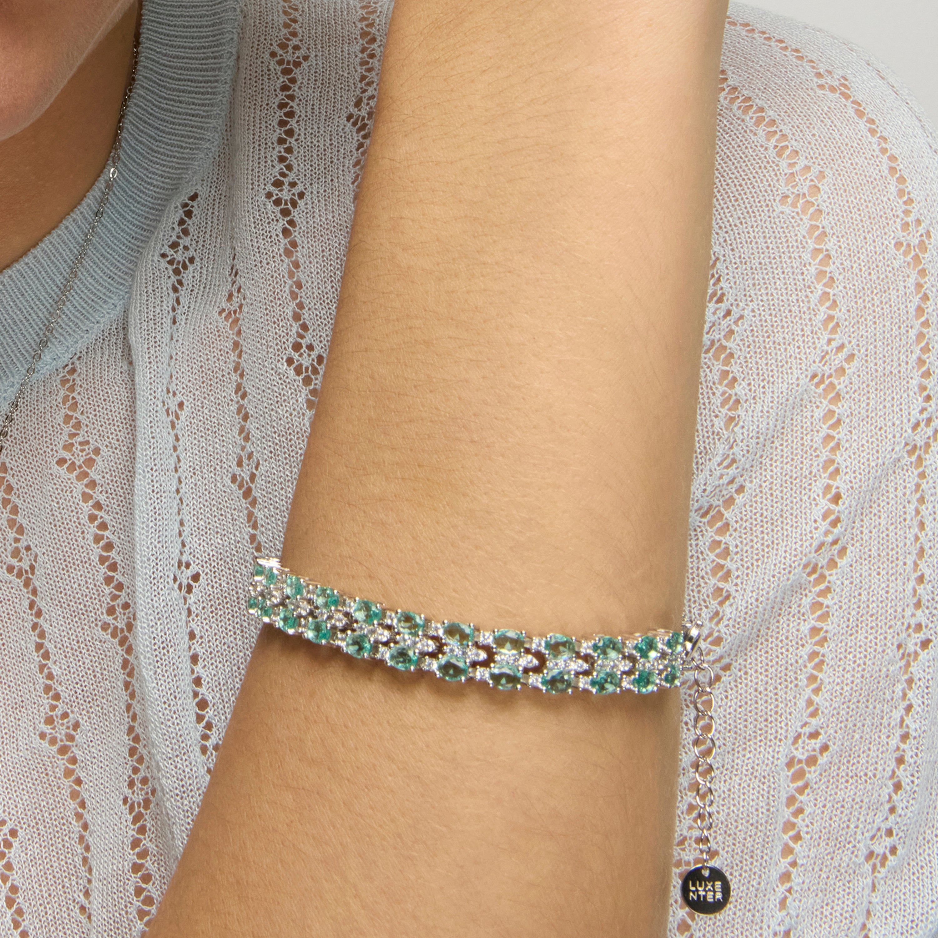Pulseira de Prata de Lei 925 e Quartzo Hidrotermal Verde Paraíba acabamento ródio - Zekme