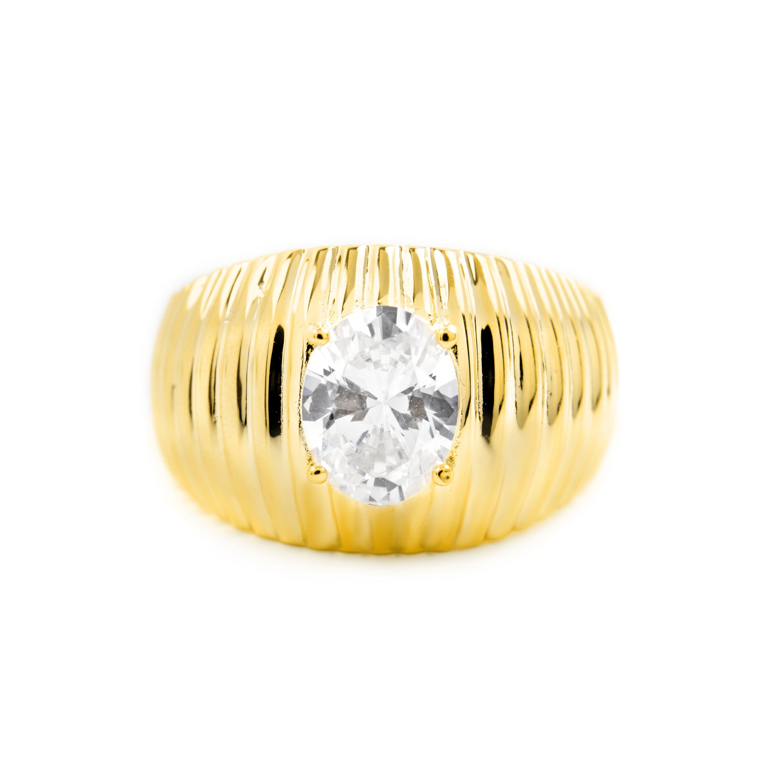 Anel de Prata de Lei 925 e Zircónia Brilhante acabamento em ouro amarelo de 18k - Metri