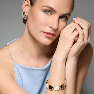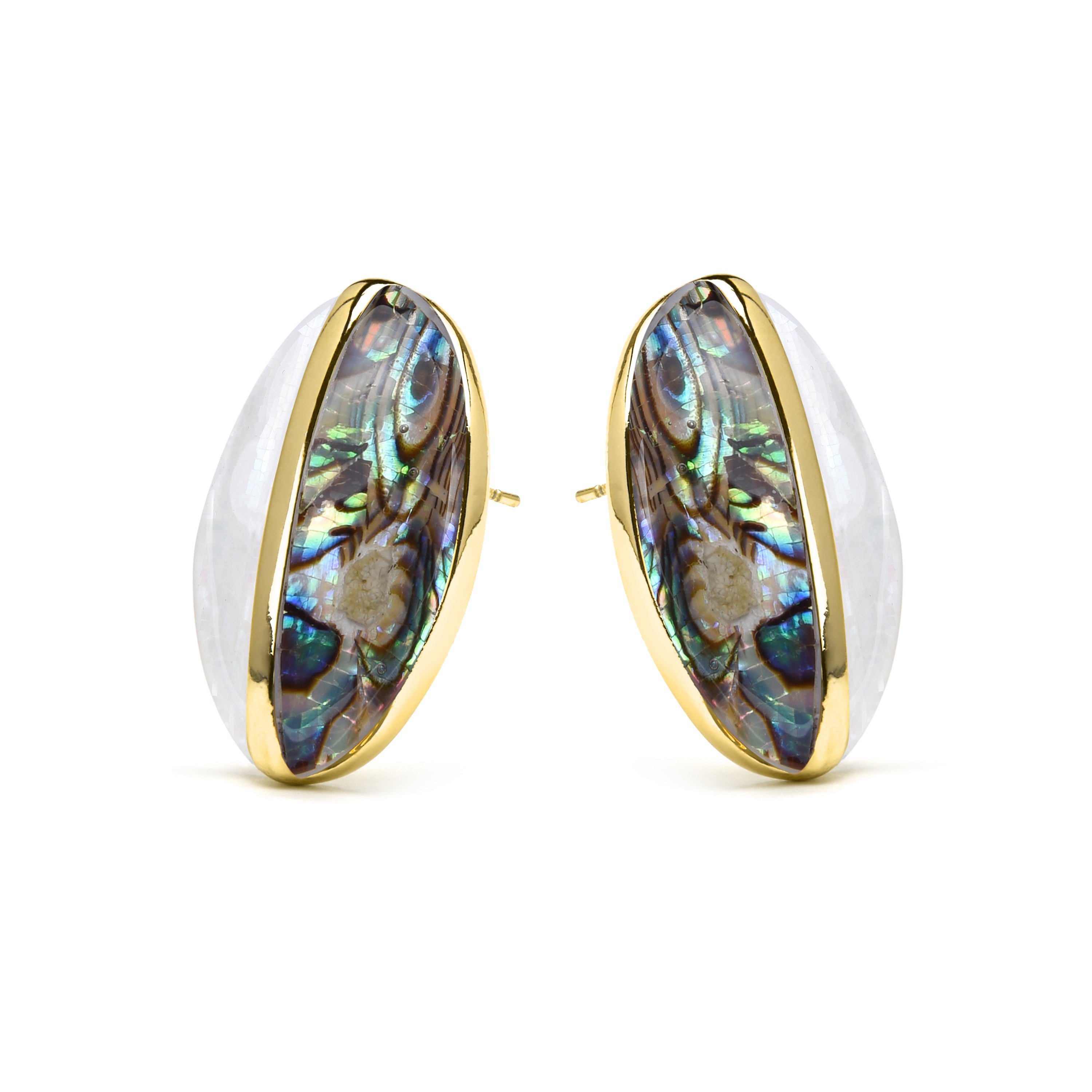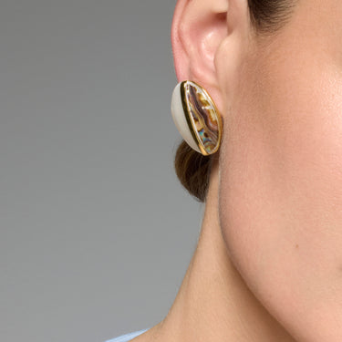 Brincos Thisca de Madrepérola Branca com acabamento em ouro amarelo de 18k