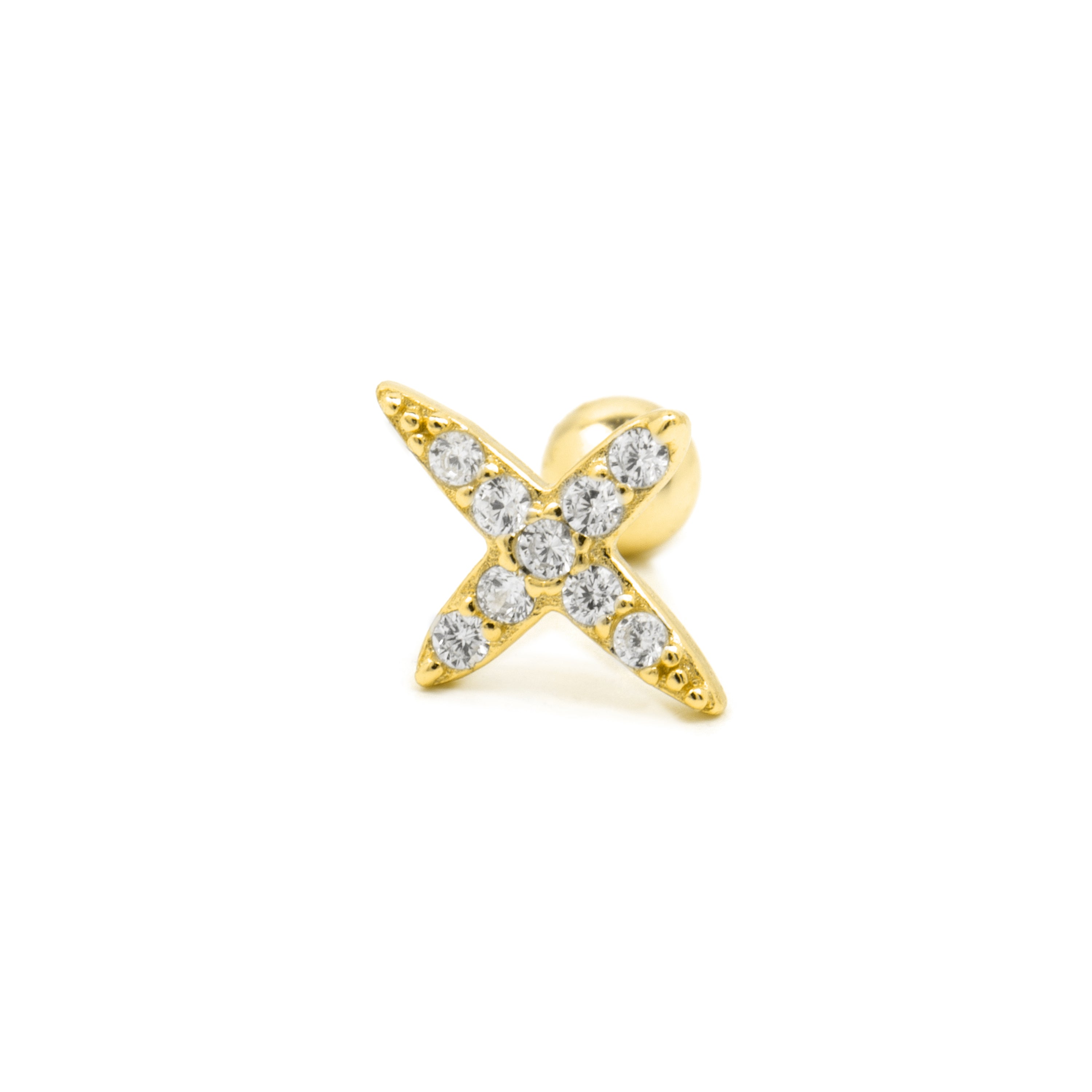 Piercing de Prata de Lei 925 e Zircónia Brilhante acabamento em ouro amarelo de 18k - Eldia