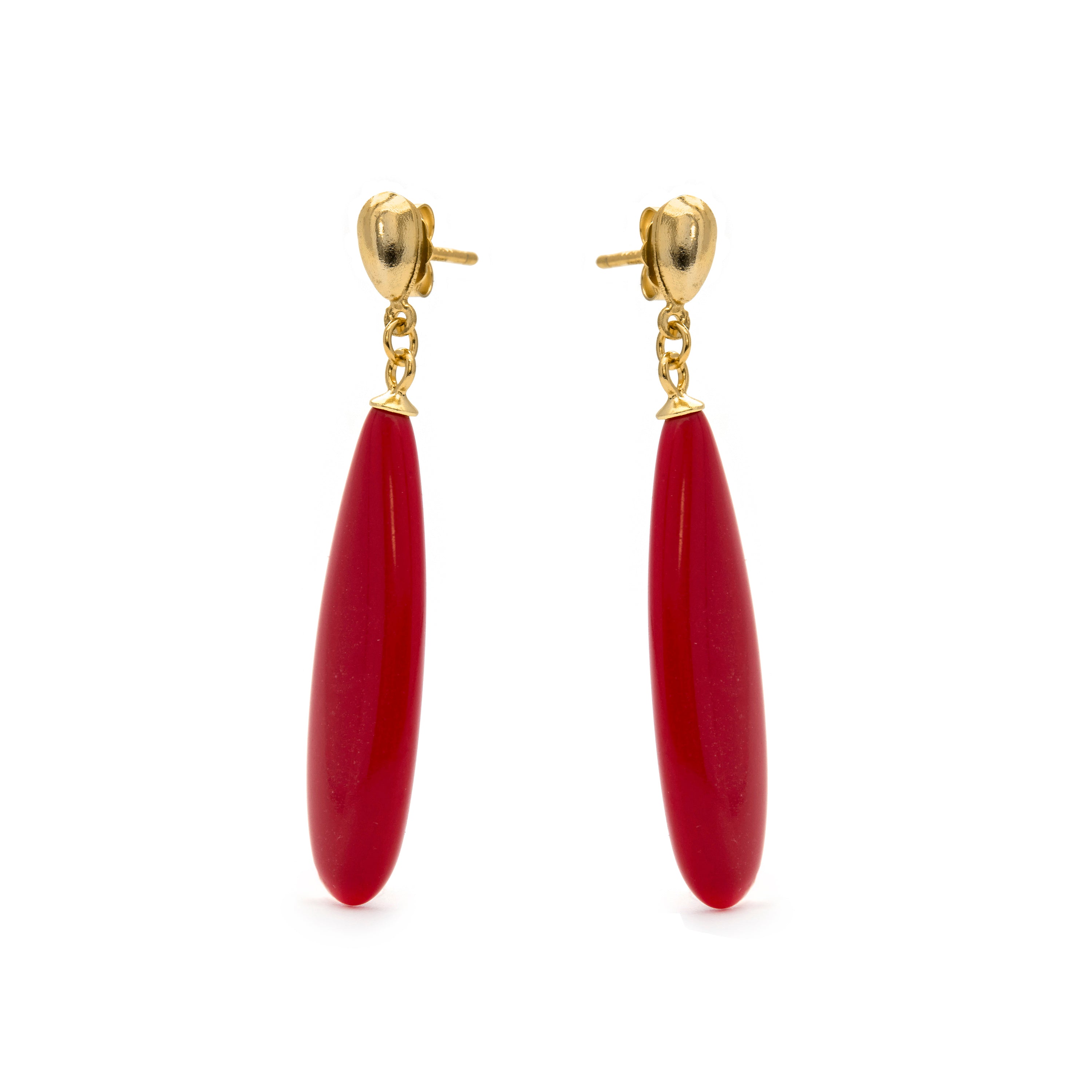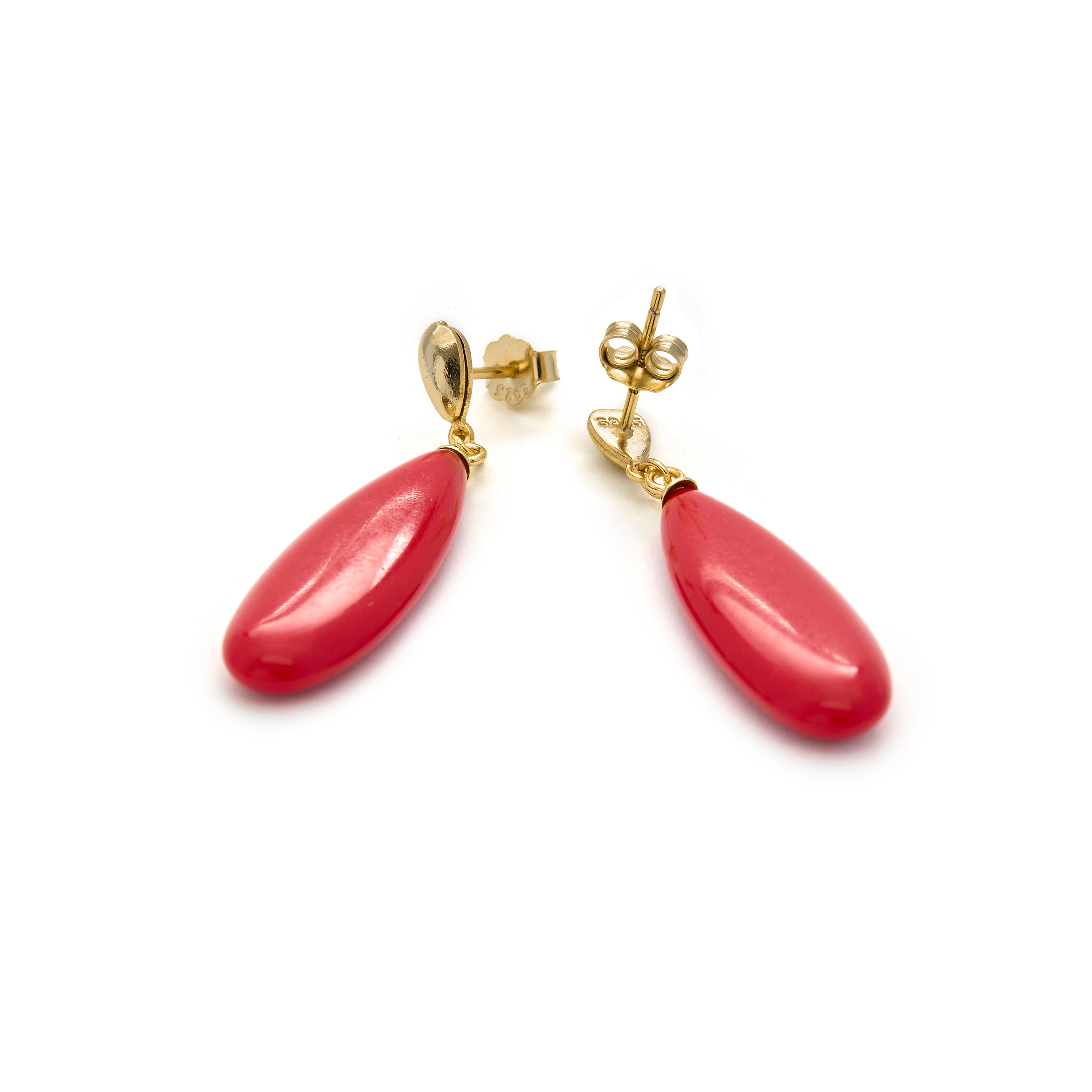 Brincos de Prata de Lei 925 com Coral acabados em ouro amarelo 18K - Adak