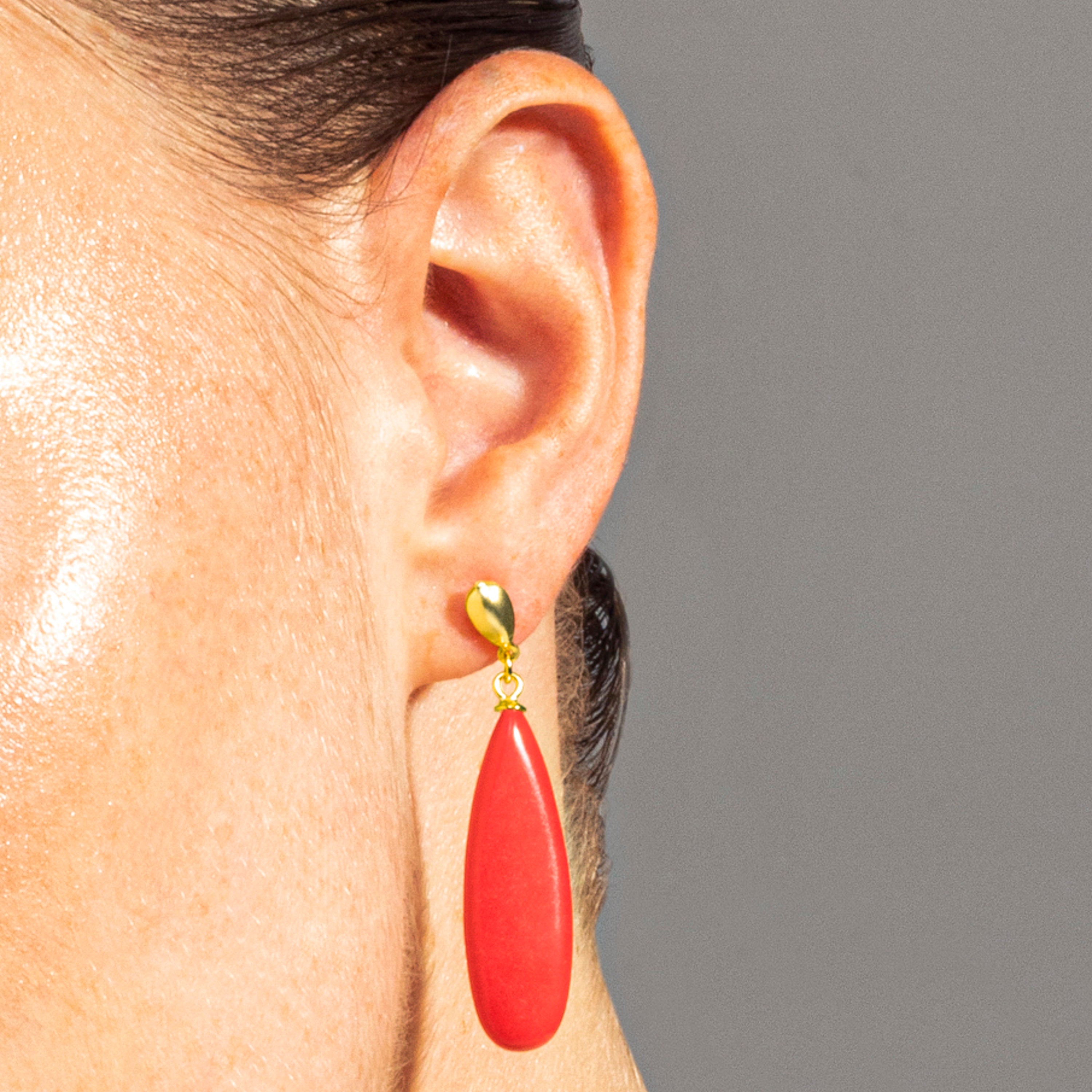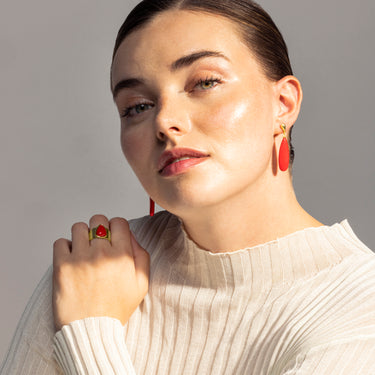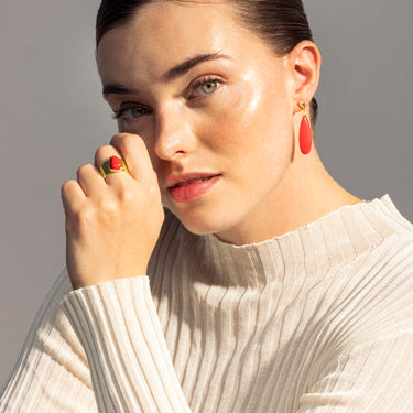 Brincos Adak em prata de lei 925 e Coral com acabamento em ouro 18k. África Moda transporta-te para um mundo de cores vibrantes, texturas requintadas e designs artesanais que refletem a essência do teu espírito.