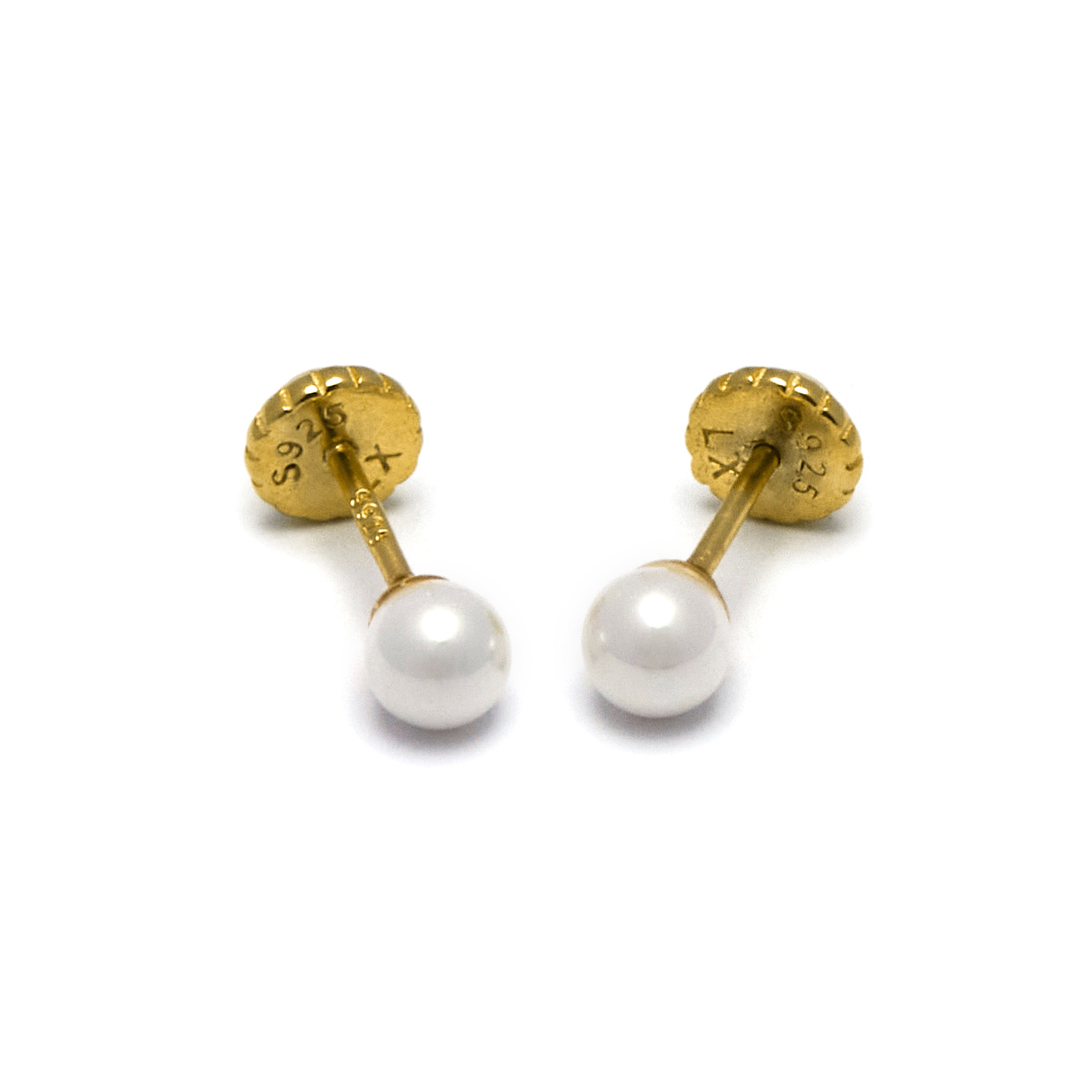 Brincos de Prata de Lei 925 com Pérola Branca acabados em ouro amarelo 18K - Danlug