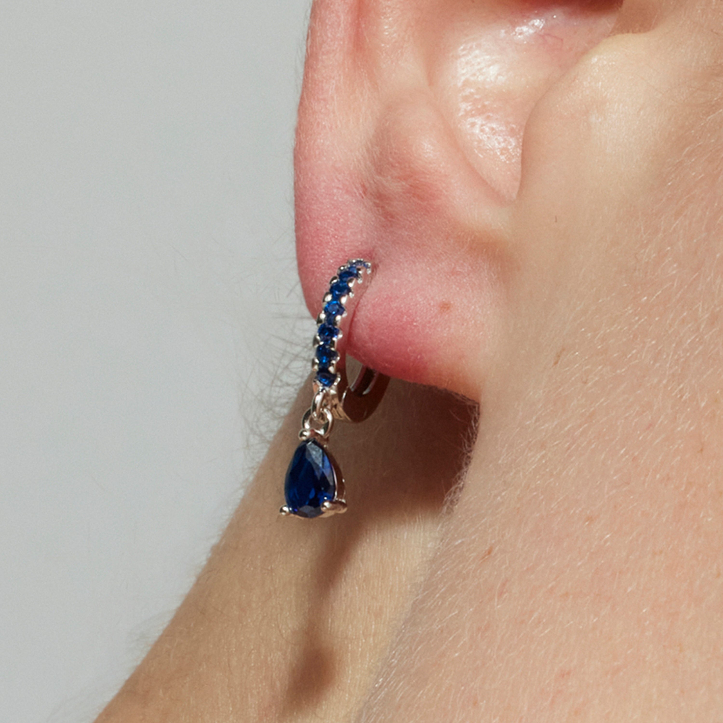 Brincos de Prata de Lei 925 com Zircónia Safira acabados em ródio - Intheon