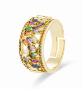 Anel Fabeu de Zircónia Multicolor com acabamento em ouro 18k. África Moda transporta-te para um mundo de cores vibrantes, texturas requintadas e designs artesanais que refletem a essência do teu espírito.