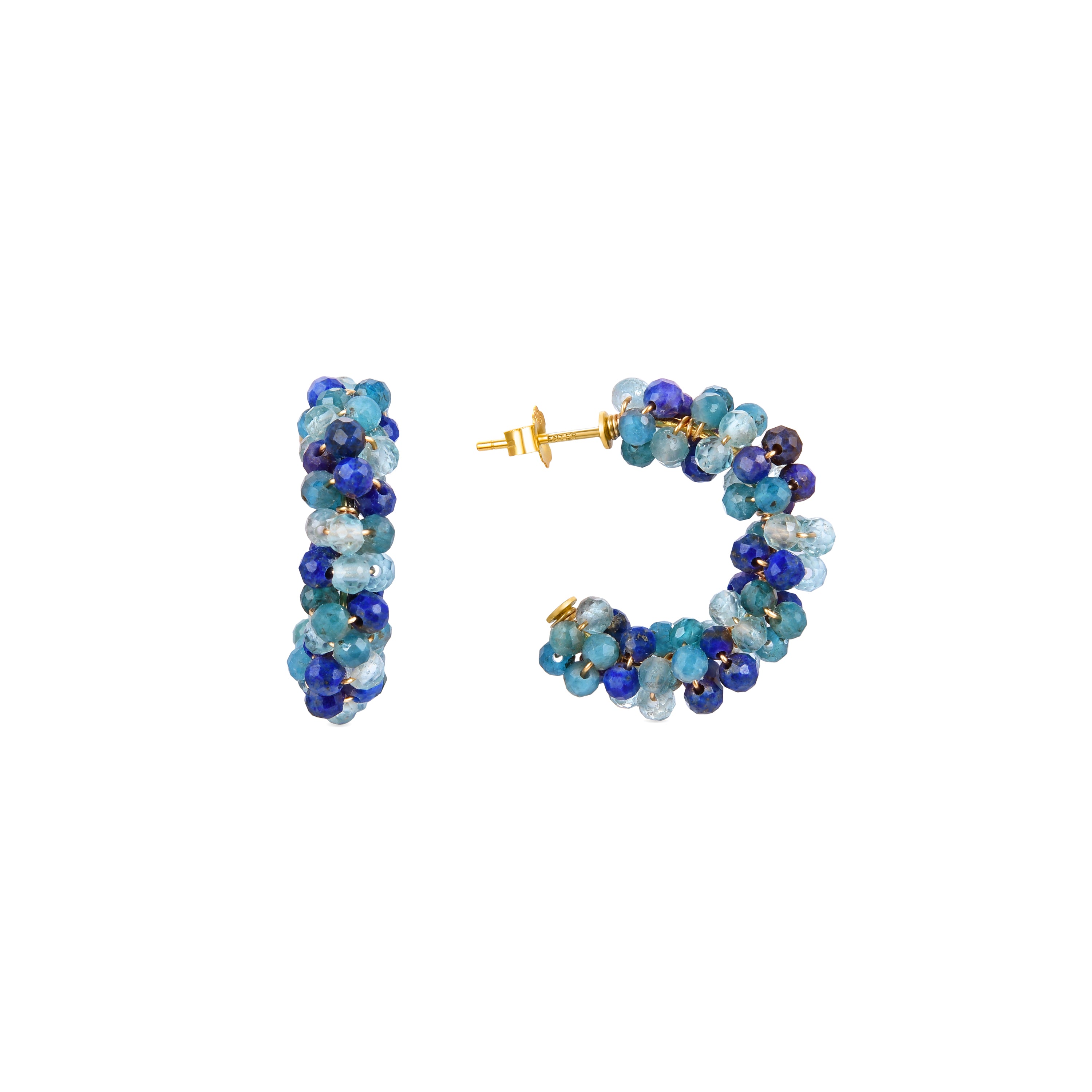 Brincos Lazum de Prata de Lei 925 e Cristal Azul Escuro acabados em ouro amarelo de 18 quilates. Atelier transmite tendência em cada joia, com designs que se foram adaptando à evolução da moda e da mulher. É a linha perfeita para mulheres únicas que querem dar um toque de cor ao seu dia a dia.