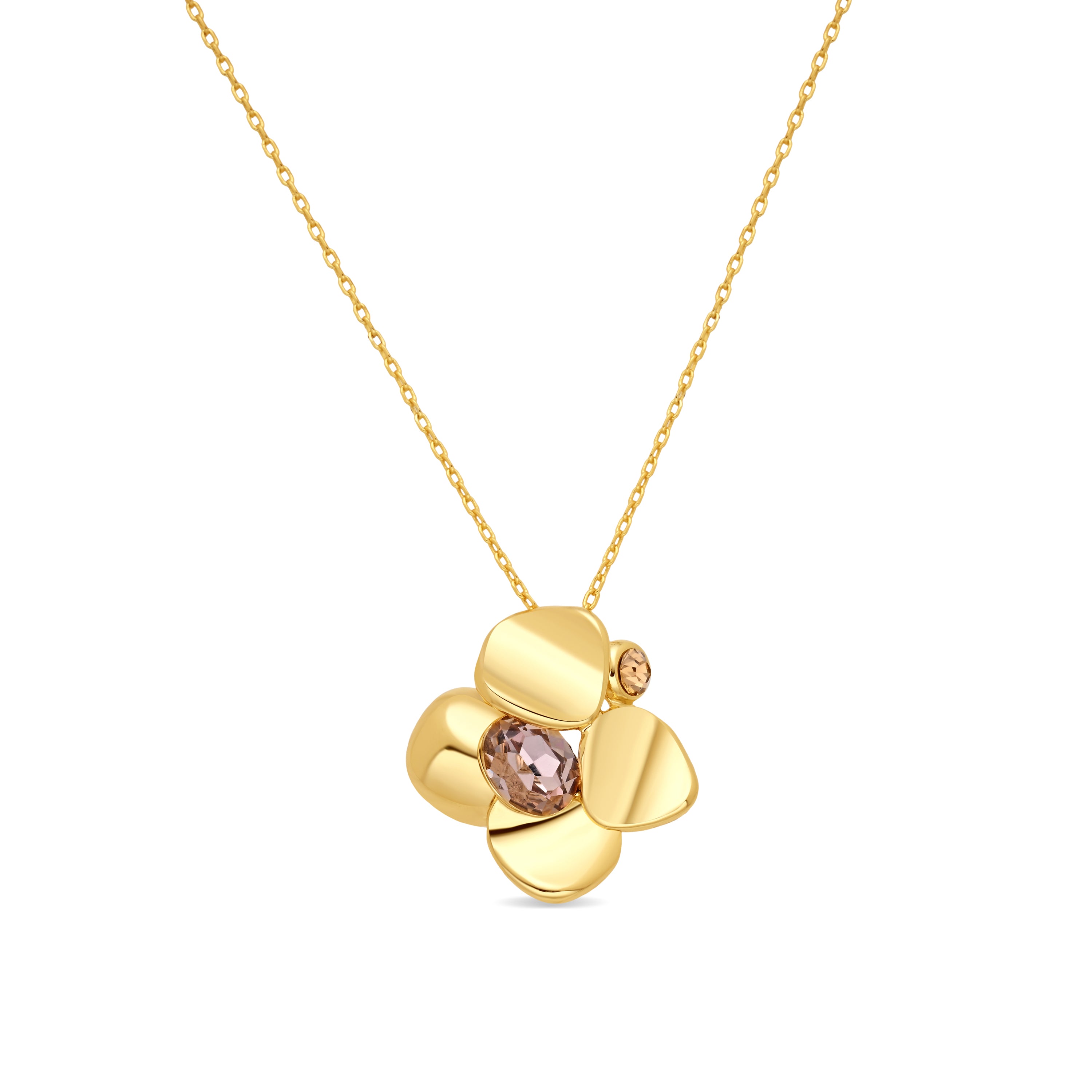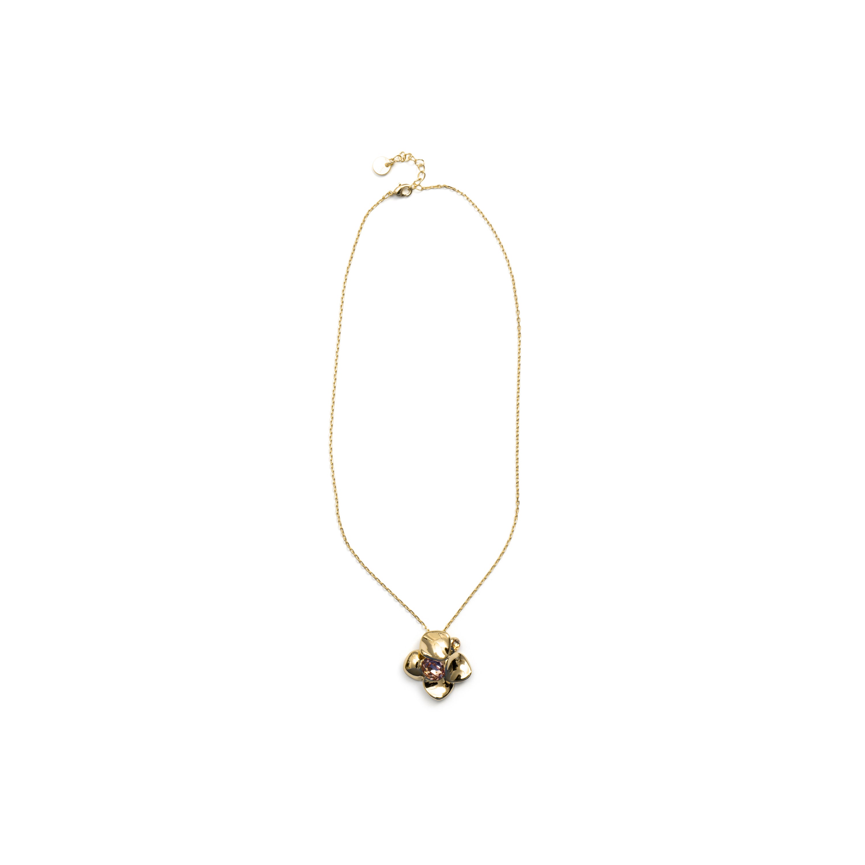 Colar de Cristal Rosa com acabamento em ouro amarelo de 18k - Dilom