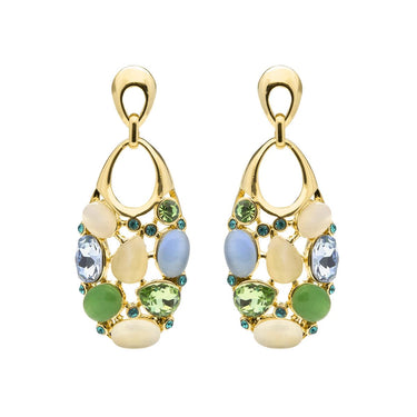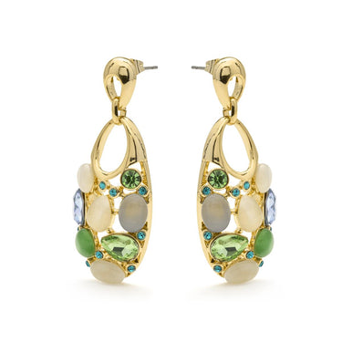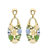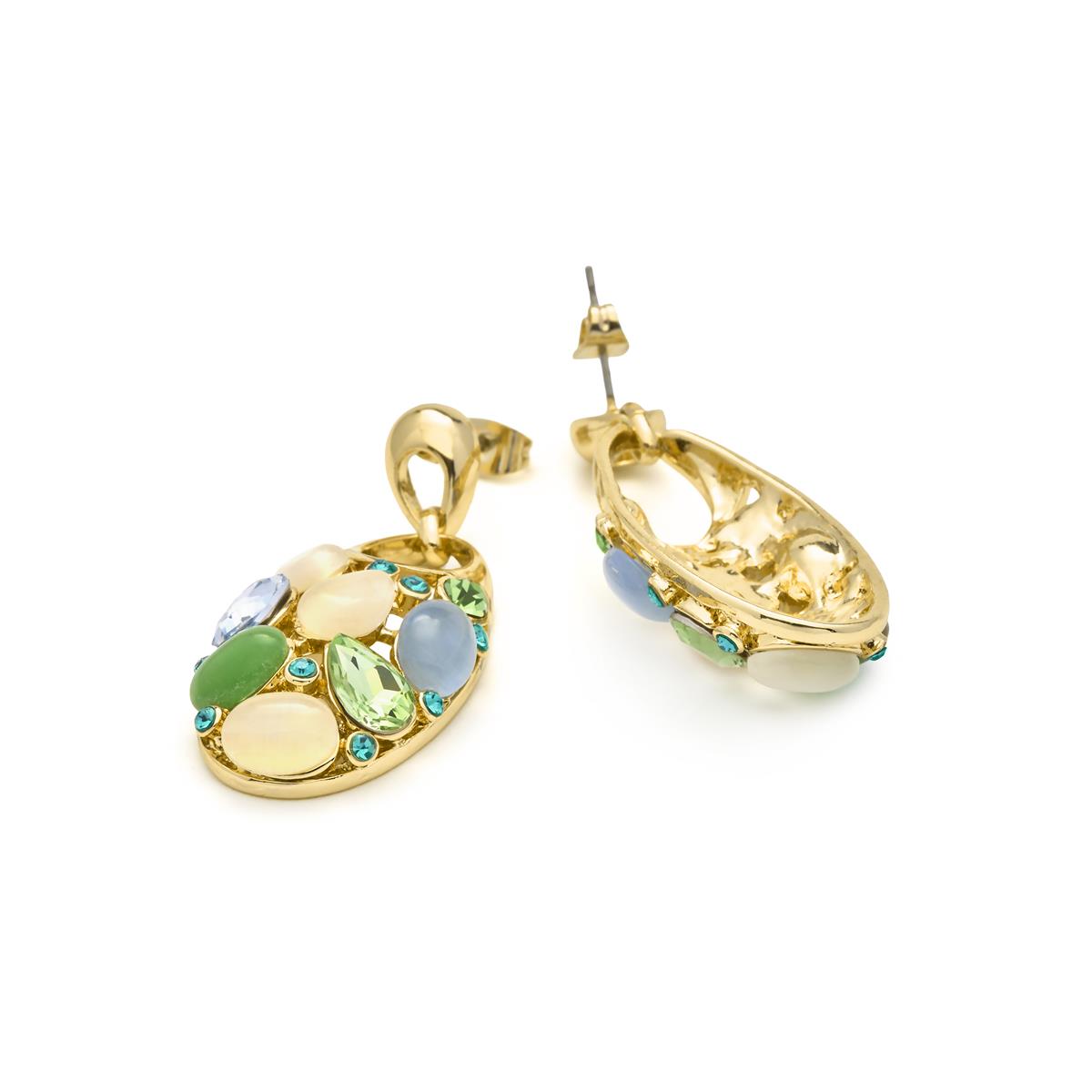 Brincos Humawar de Olho de Gato Multicolor com acabamento em Ouro Amarelo 18k
