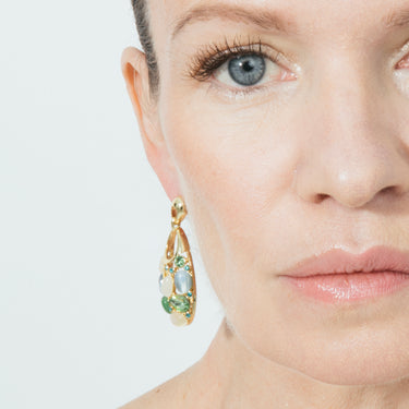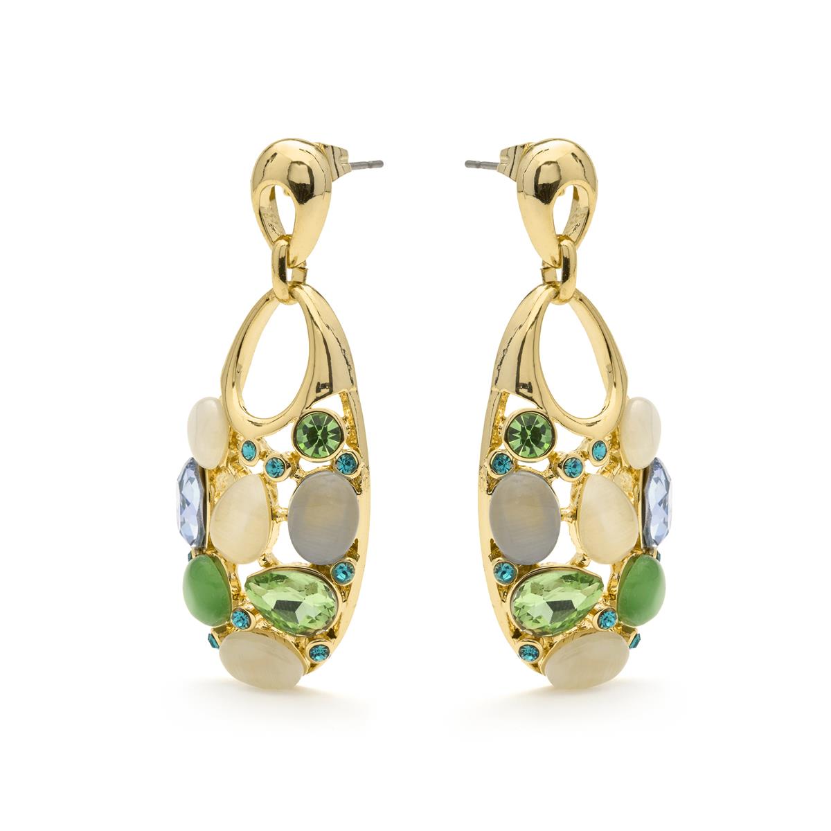 Brincos de Olho de Gato Multicolor acabamento em ouro amarelo 18k - Humawar