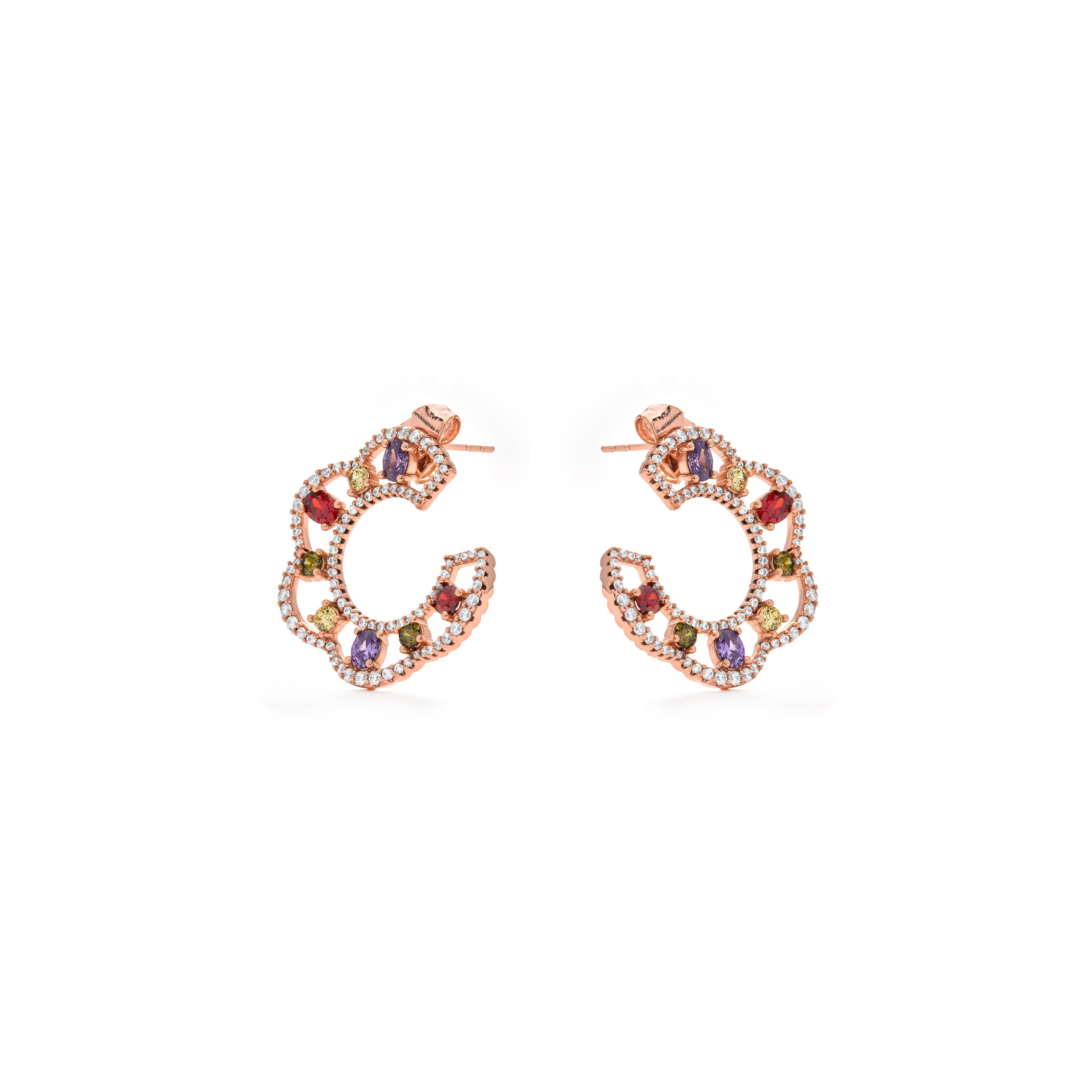 Brincos Prorax de zircónia multicolor com acabamento em ouro amarelo 18k