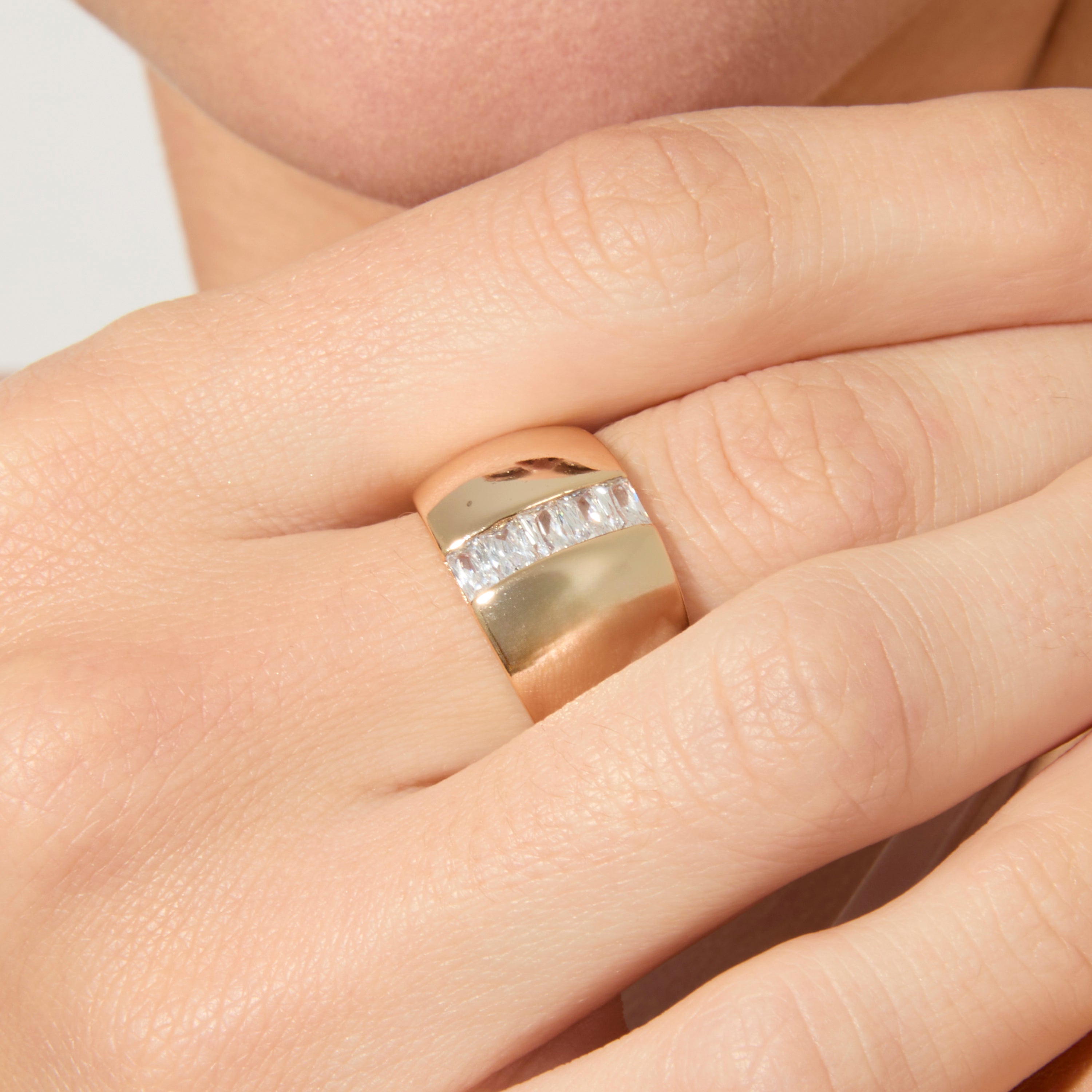 Anel Hiddon de Zircónia Brilhante com acabamento em ouro amarelo 18k