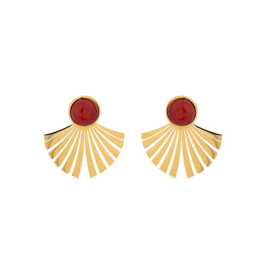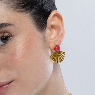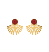 Brincos de aço Almia com Coral acabados em ouro amarelo 18K. O estilo Boho é uma estética de espírito livre que mistura diferentes culturas e expressões artísticas num estilo eclético com ênfase nos elementos orgânicos e na natureza.