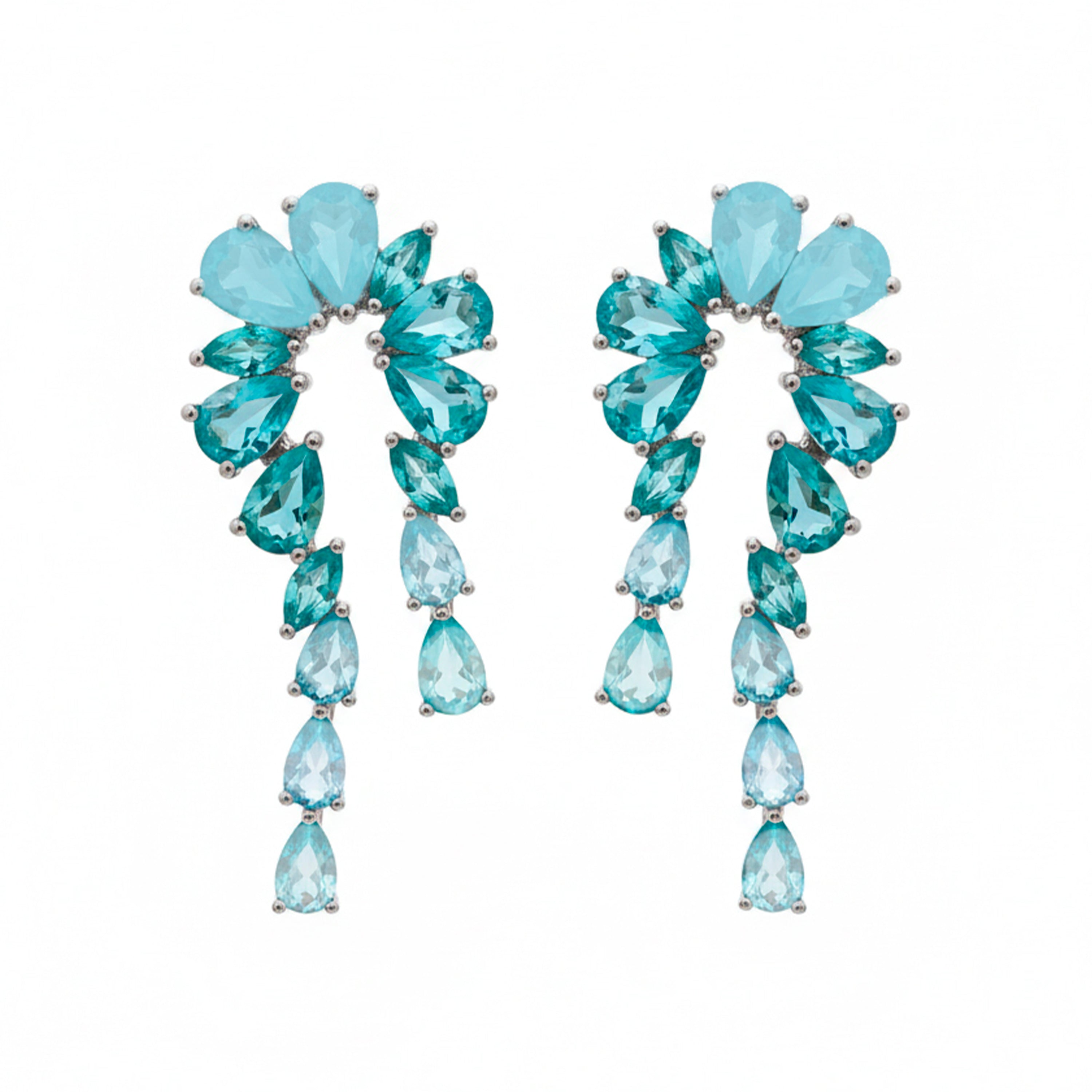 Brincos Ridba de Quartzo Hidrotermal Verde Paraíba com Acabamento Prateado