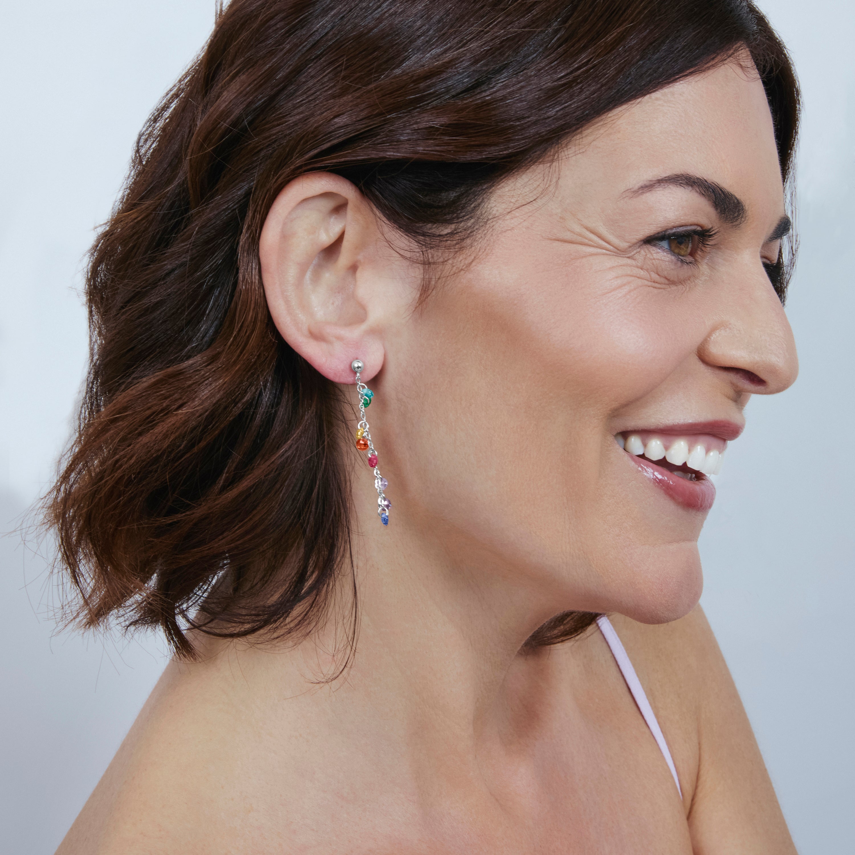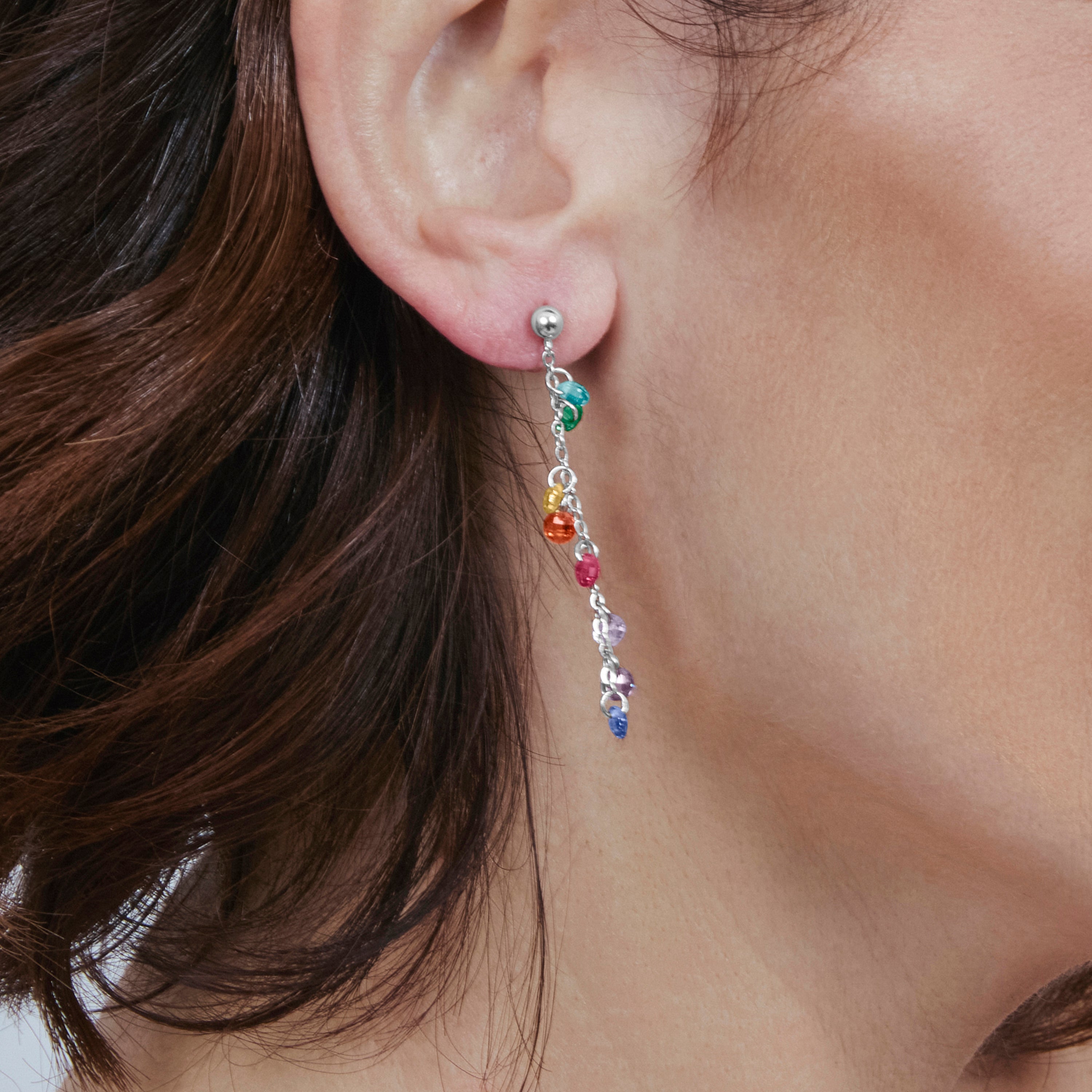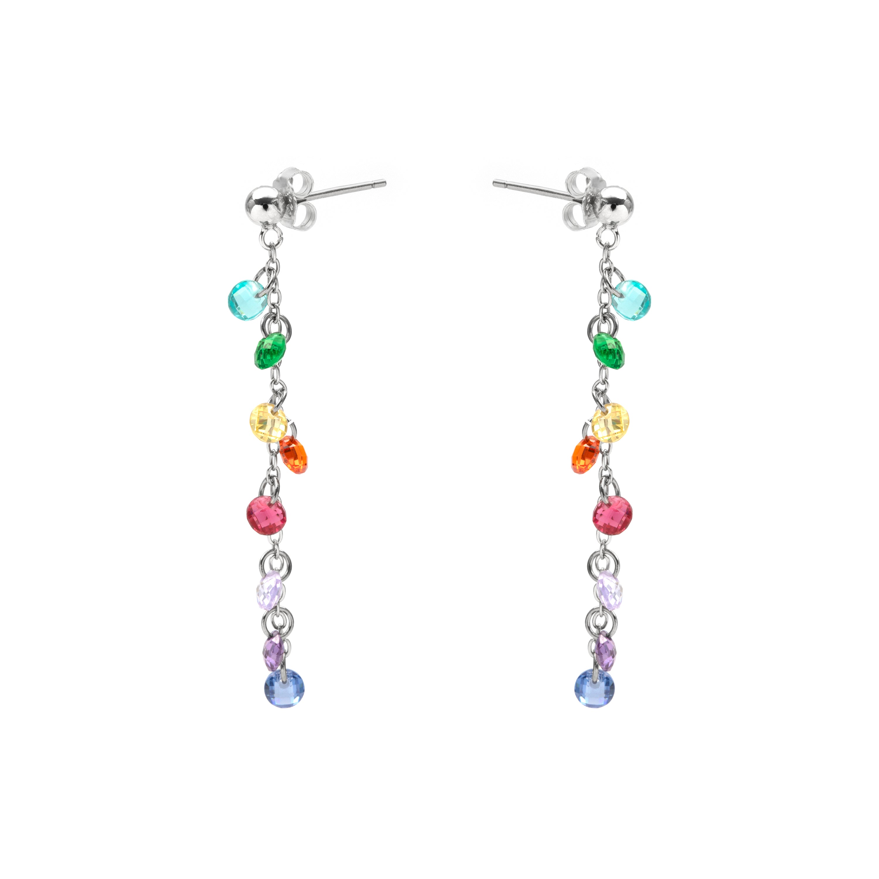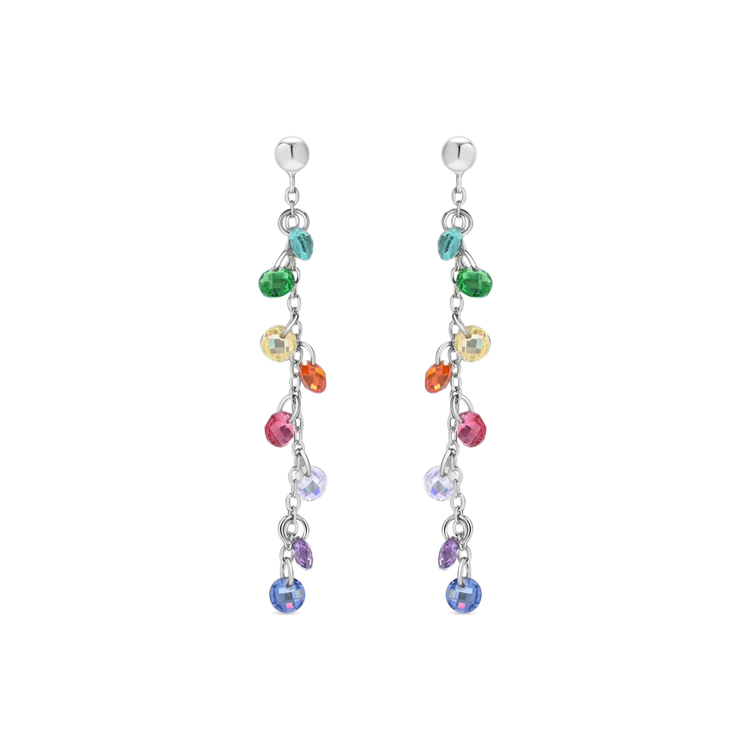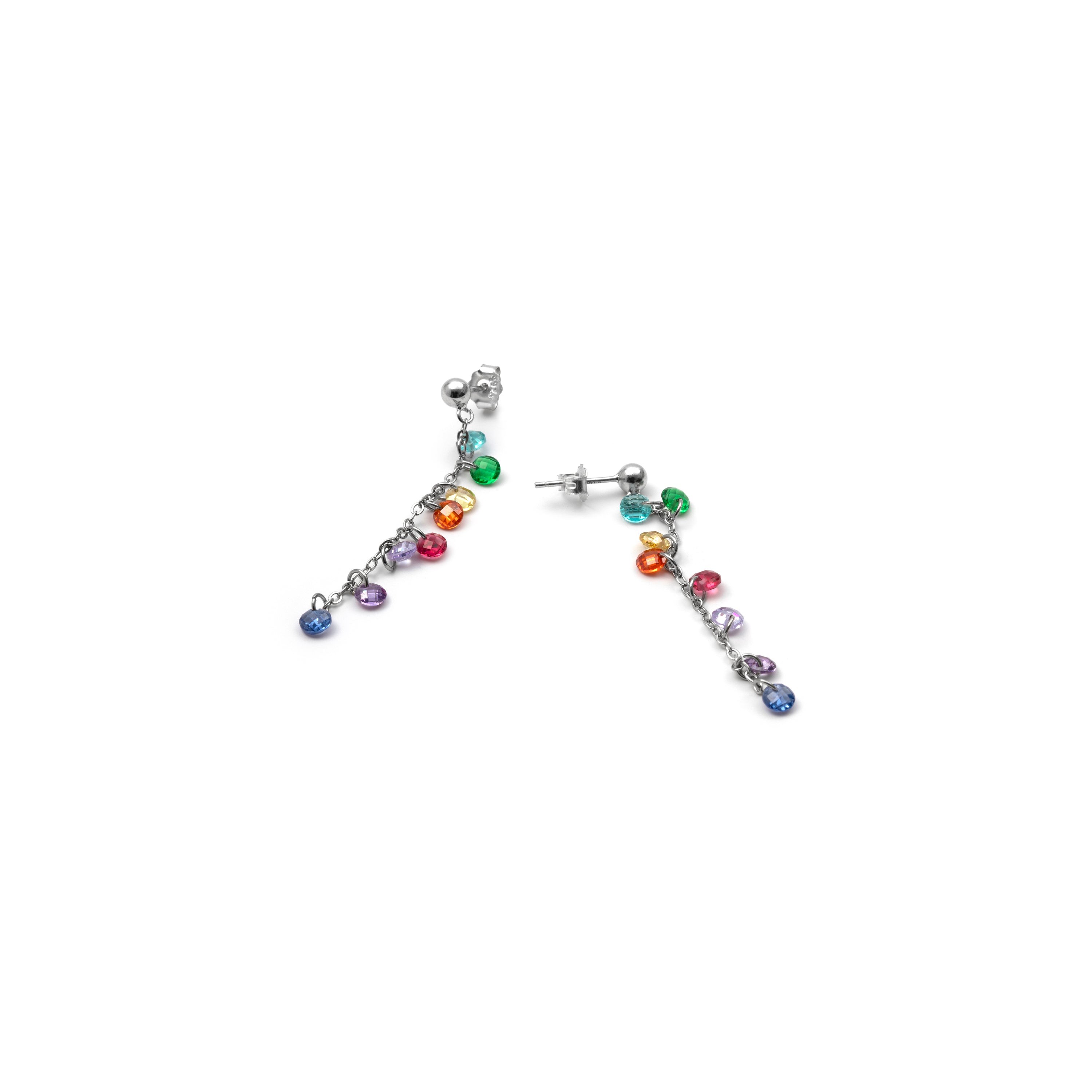 Brincos de Prata de Lei 925 com Zircónia Multicolor e acabamento em ródio - Diham