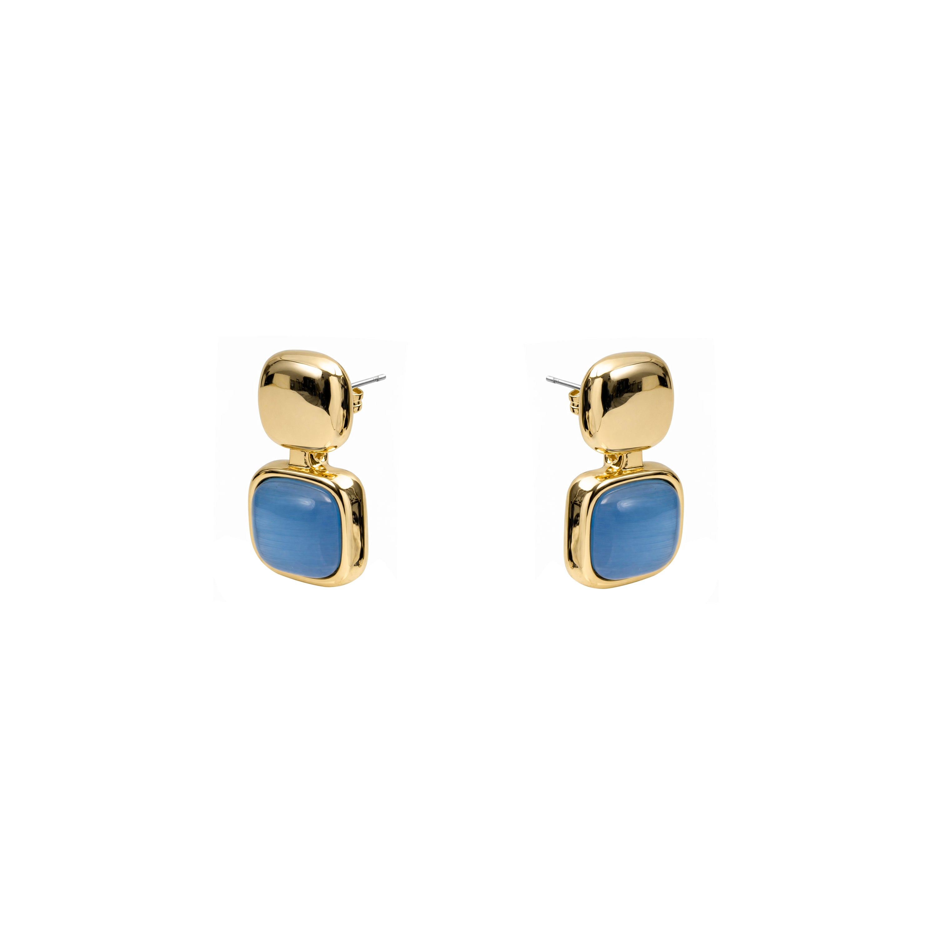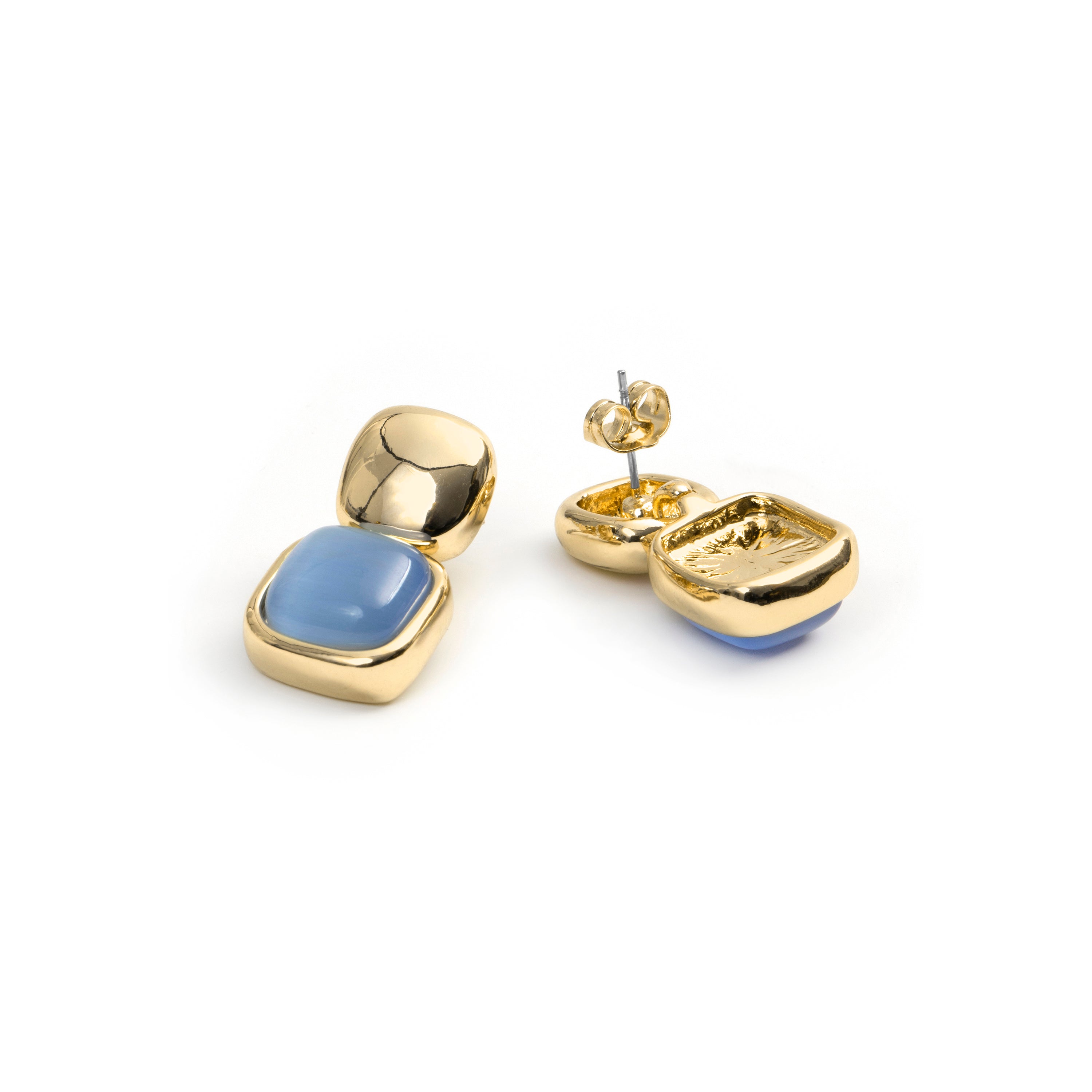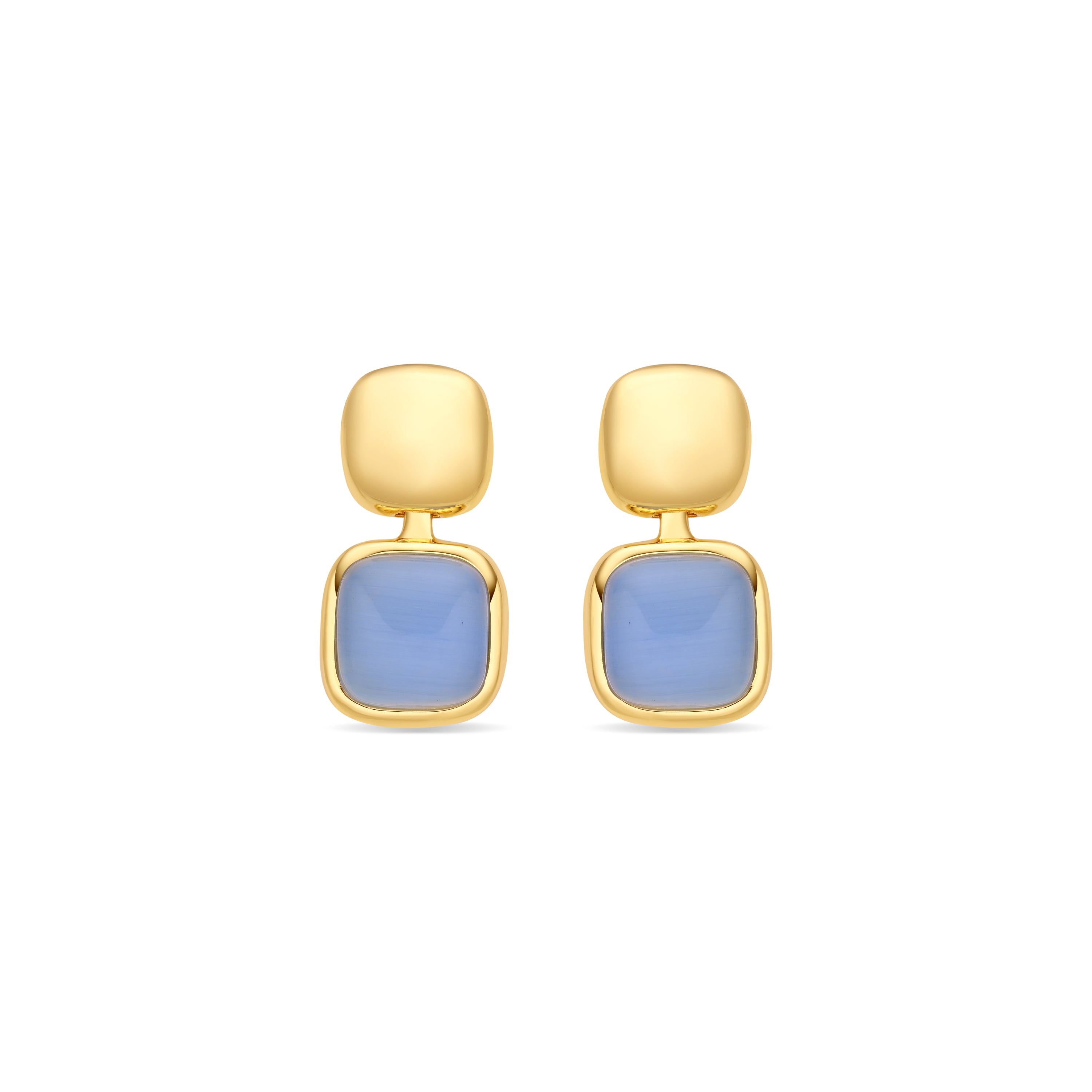 Brincos de Olho de Gato Azul com acabamento em ouro amarelo de 18k - Laroi