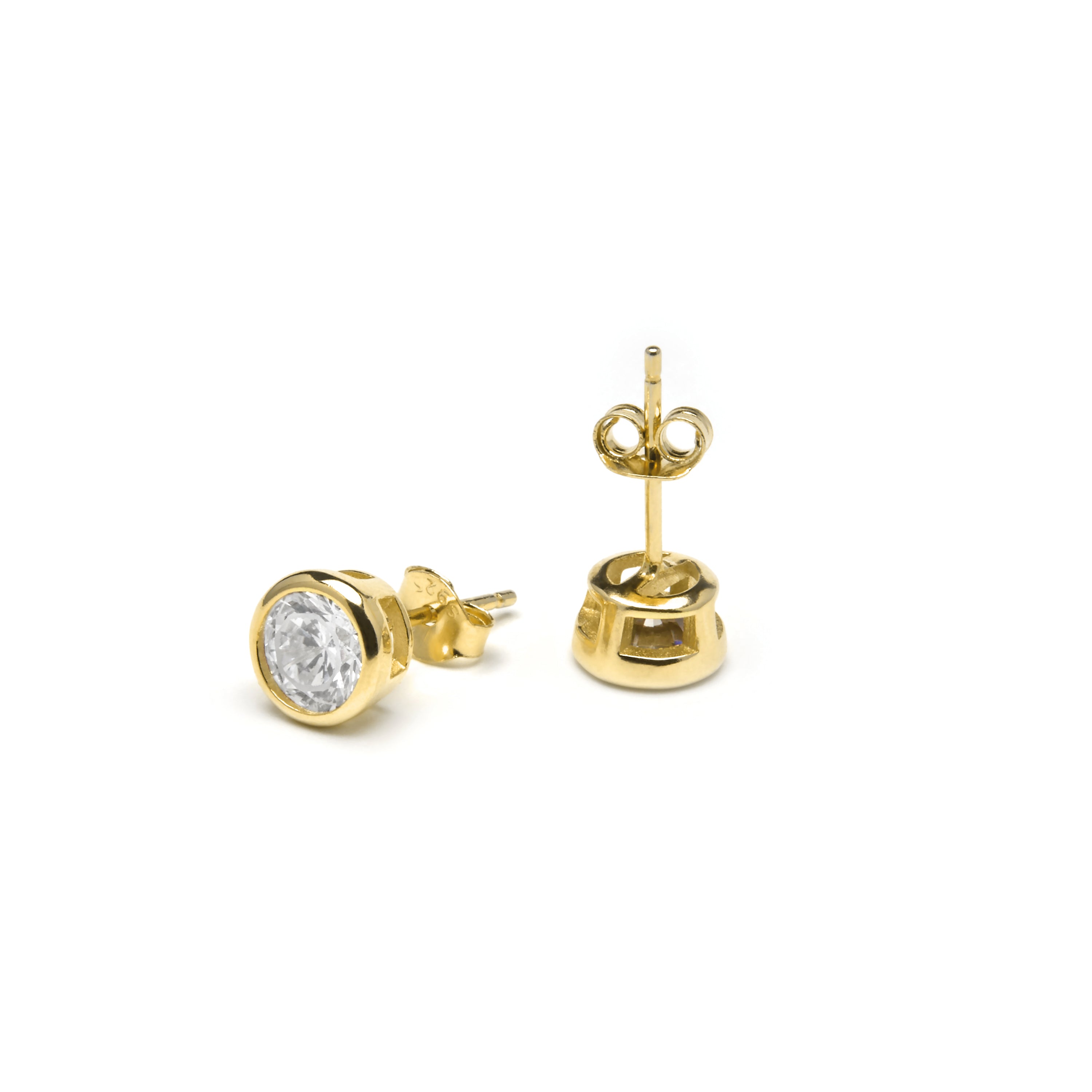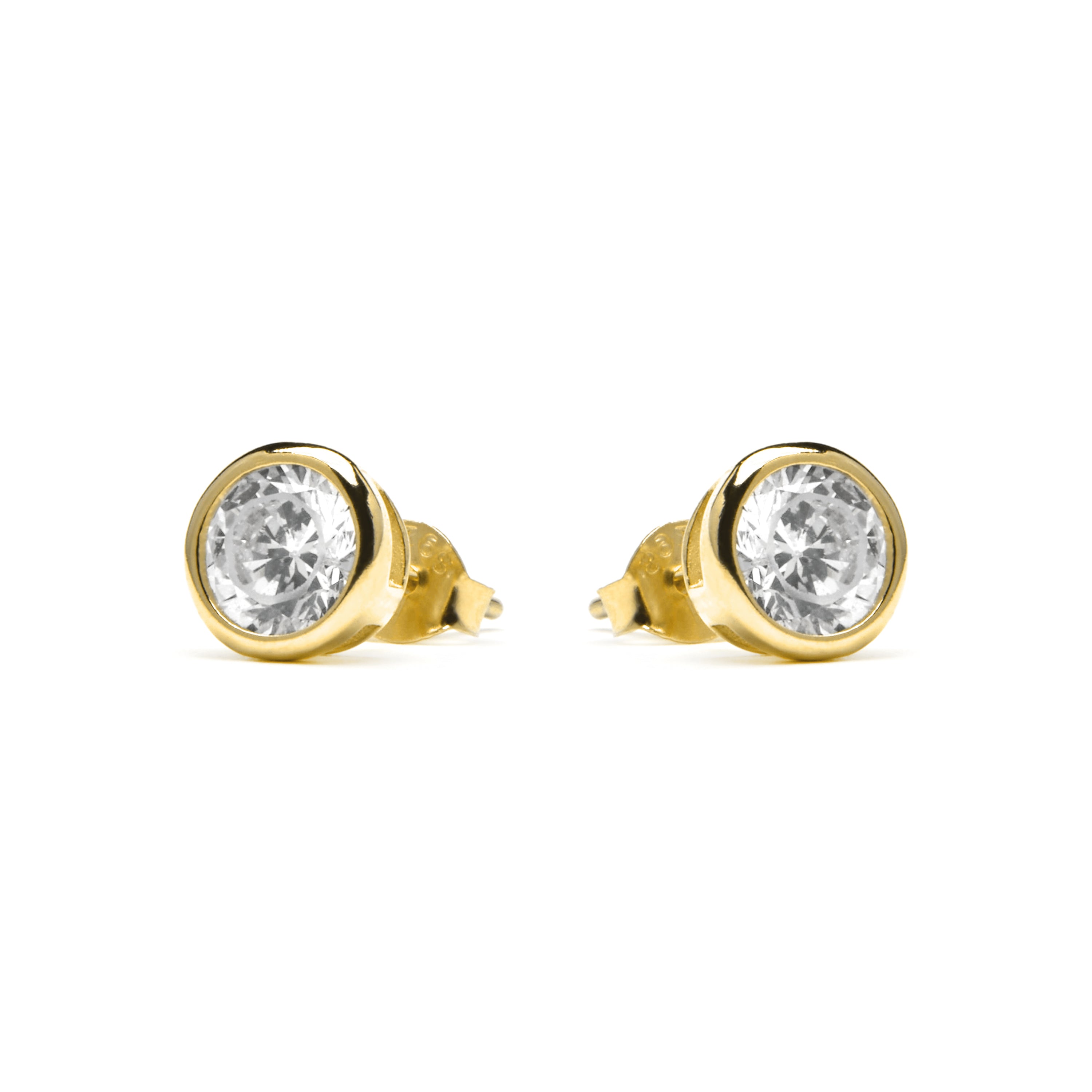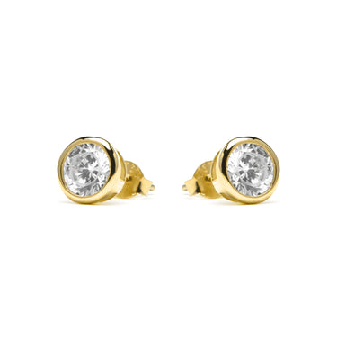 Brincos de prata de lei 925 de 5mm com zircónia acabados em ouro amarelo de 18k - Basili