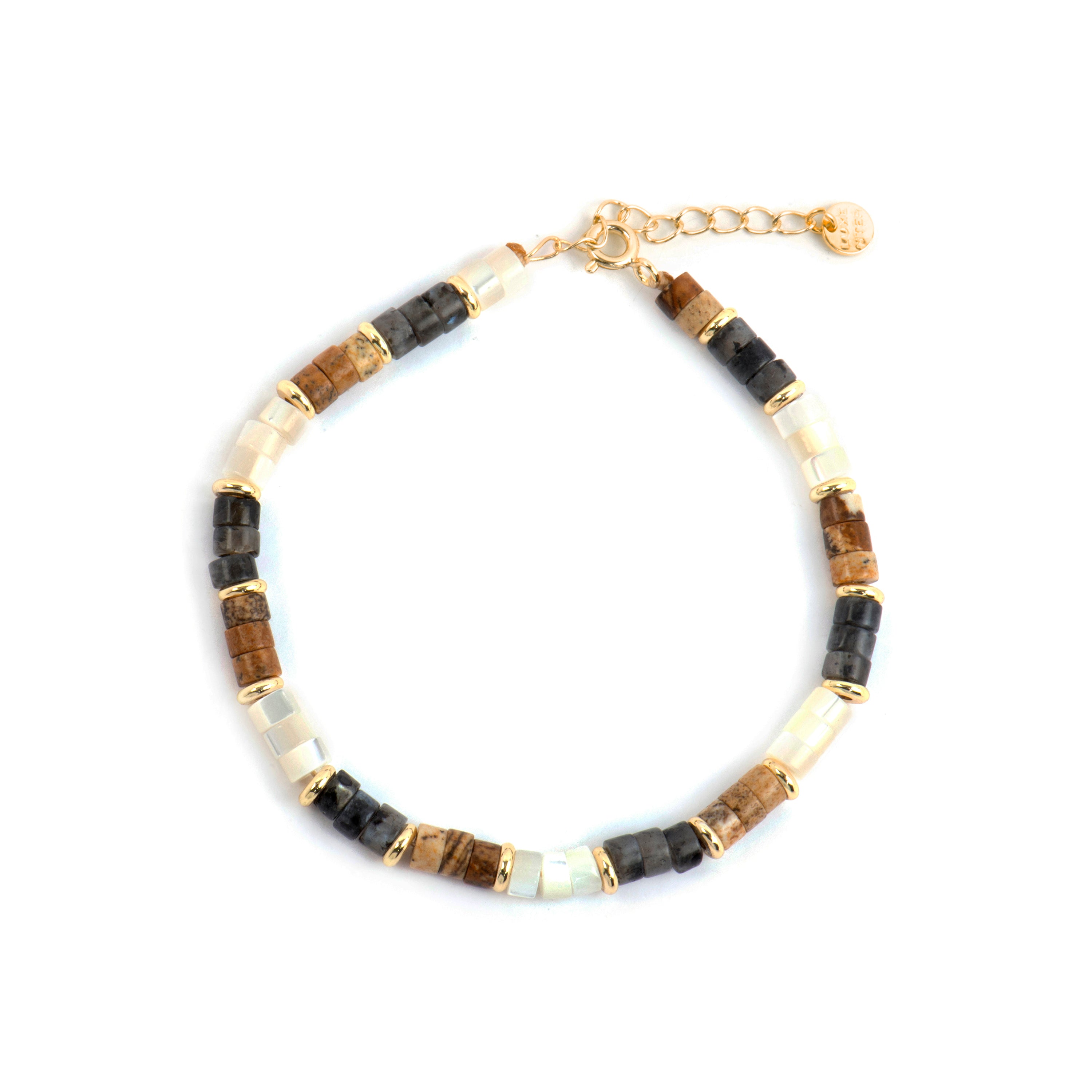 Pulseira de Prata de Lei 925 e Olho de Tigre com acabamento em ouro amarelo de 18k - Gelmi