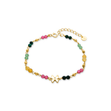 Pulseira Borboleta com contas de metal e fecho em Prata de Lei 925 com acabamento em ouro amarelo 18K. Pide un deseo caracteriza-se por designs de cariz jovem, repletos de significado e cor, originais e ao mesmo tempo discretos, que pretendem tornar-se pequenos amuletos.