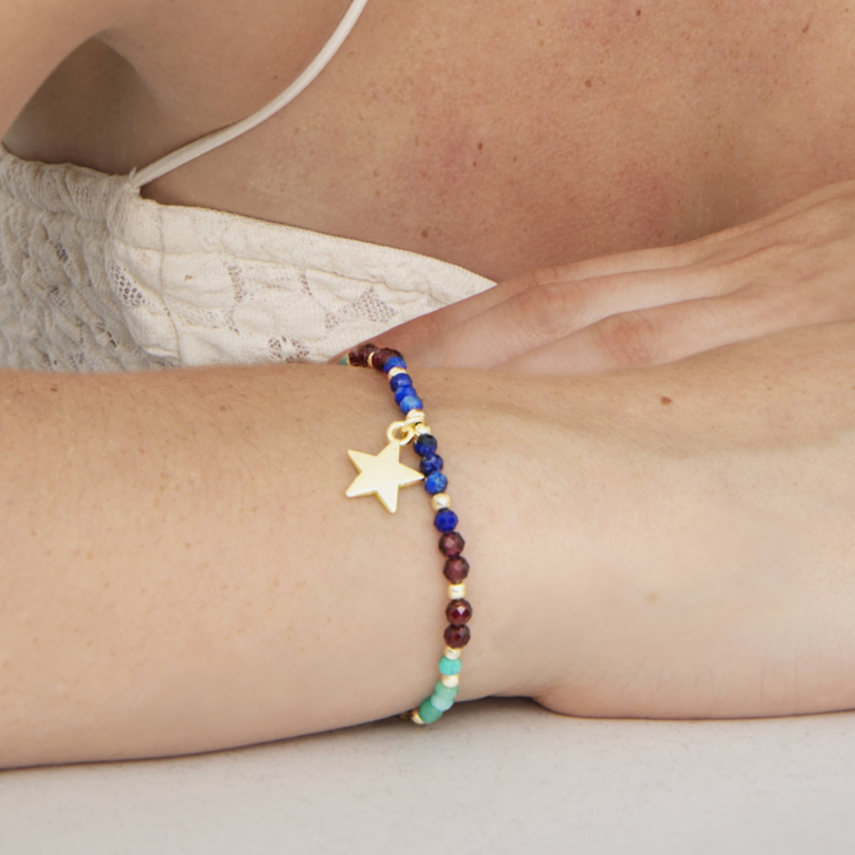 Pulseira de Cristal Multicolor acabada em ouro amarelo 18K - Nerald