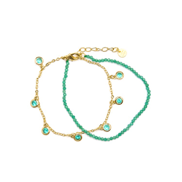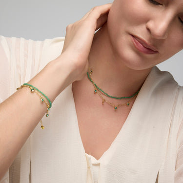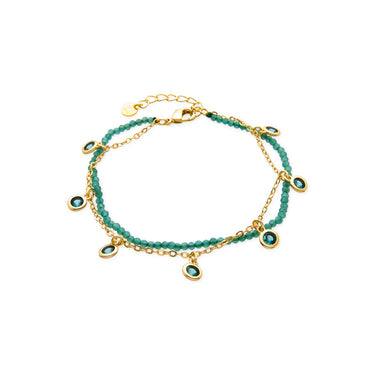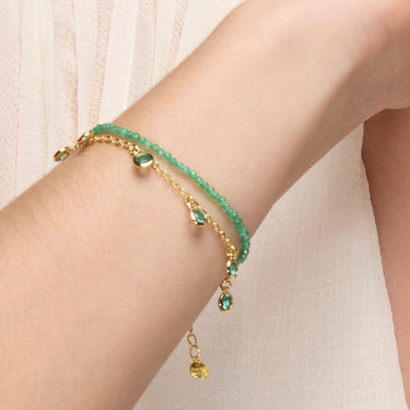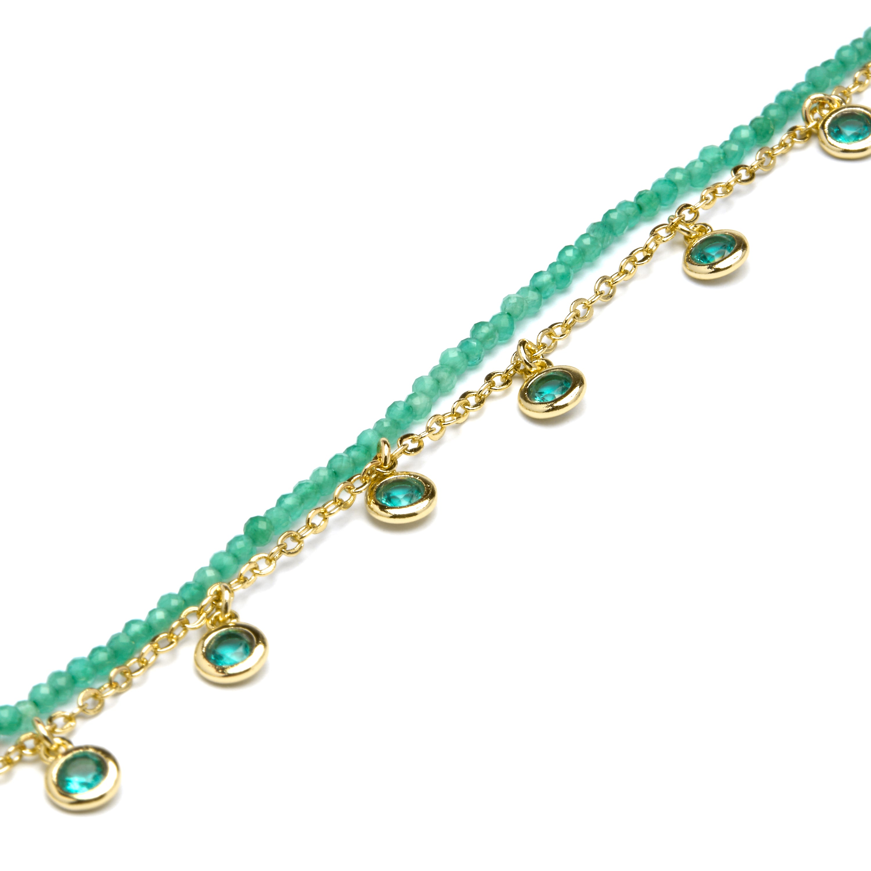 Pulseira Zaru de Prata de Lei 925 e Zircónia Esmeralda com acabamento em ouro amarelo 18k