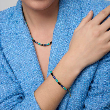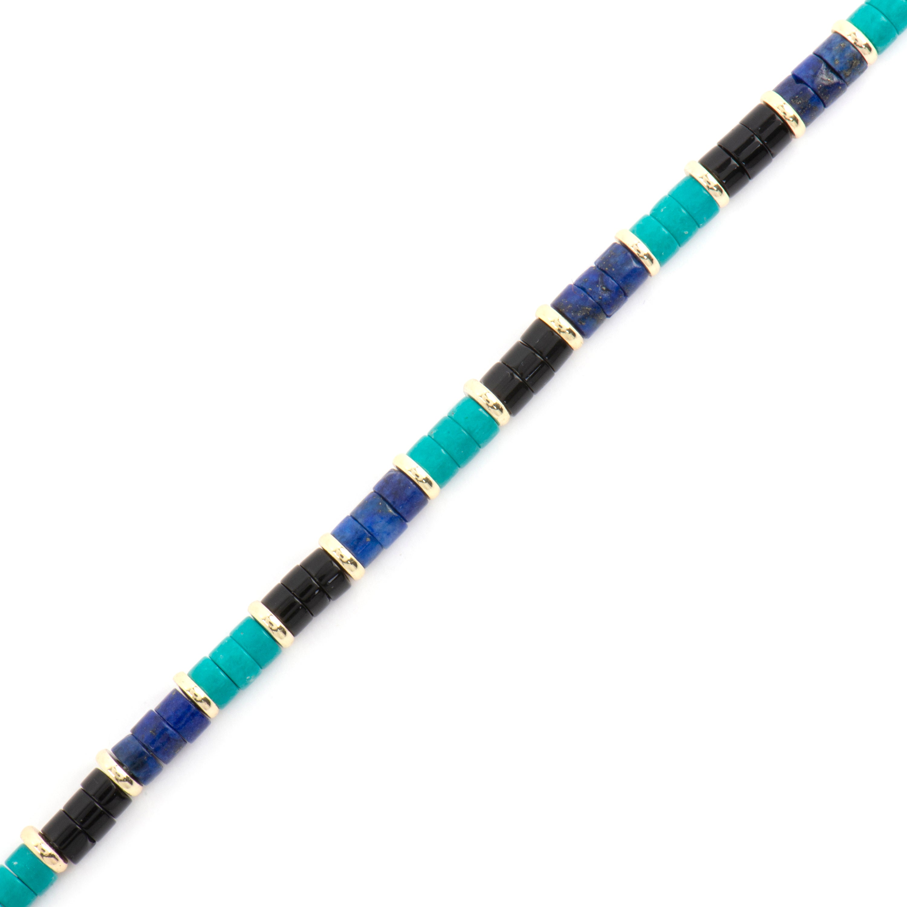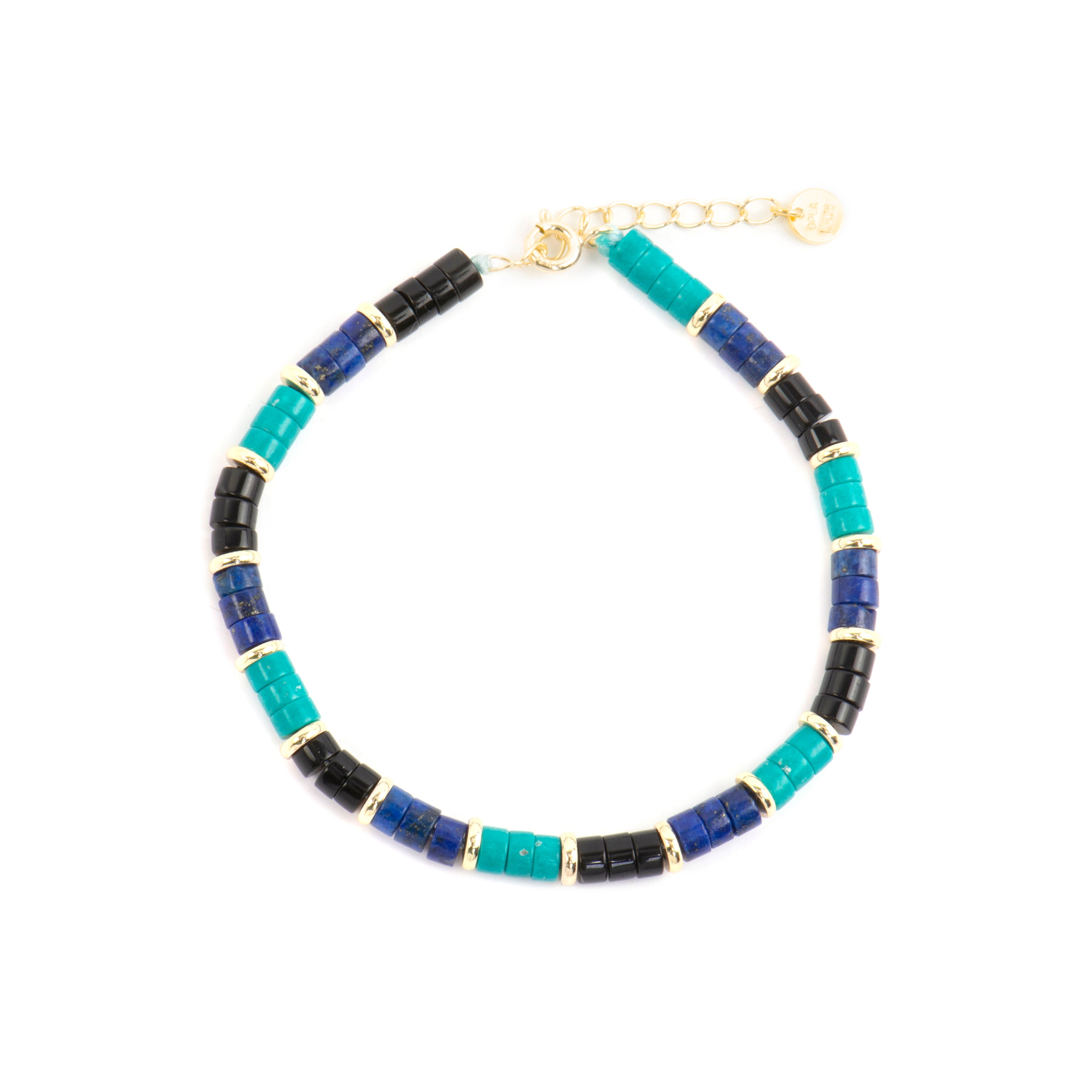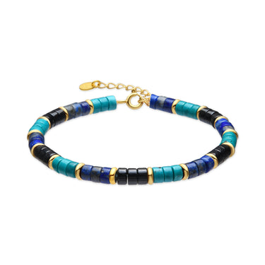 Pulseira Bathim de Prata de Lei 925 e Turquesa com acabamento em ouro amarelo de 18k