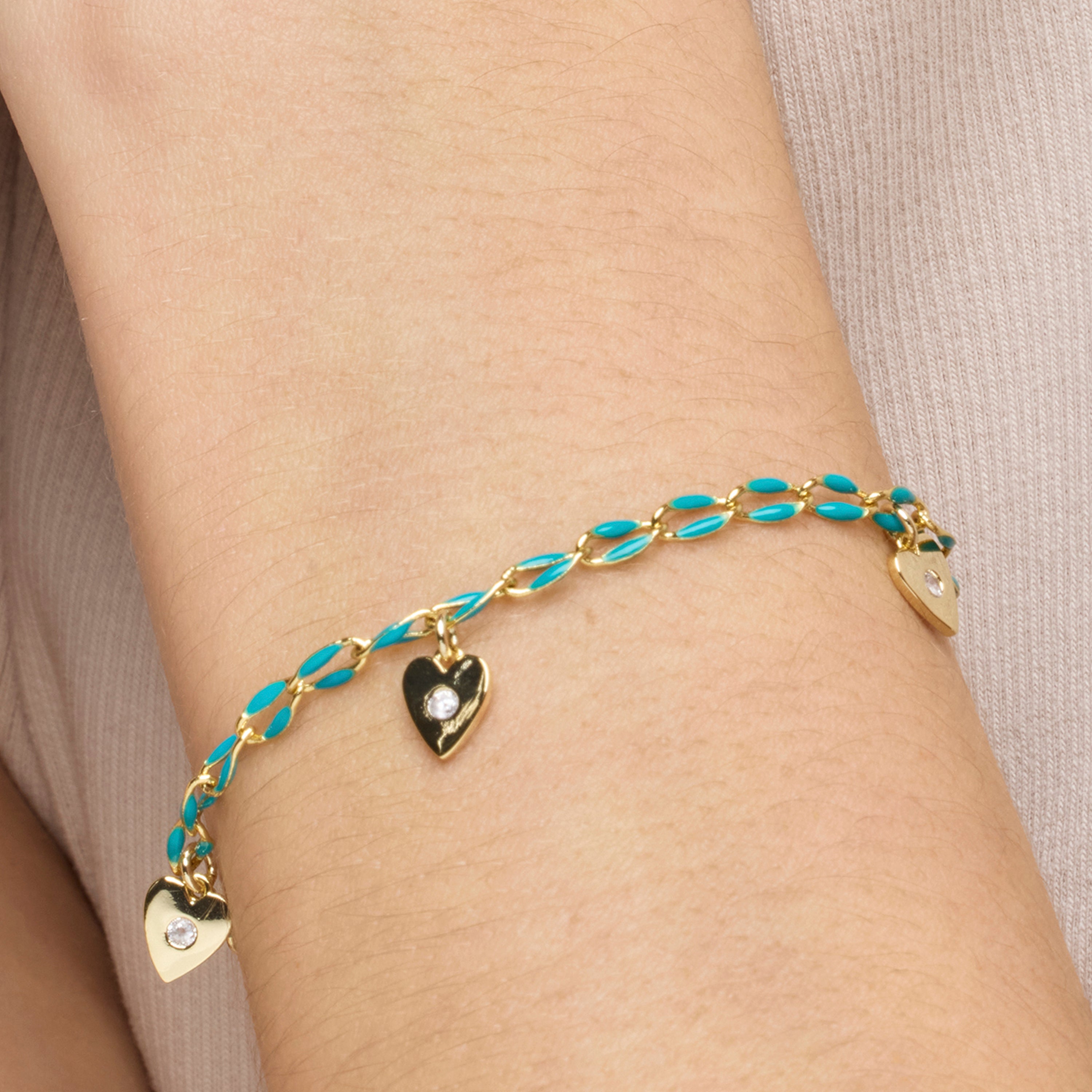 Pulseira de Prata de Lei 925 com Esmalte Azul e acabamento em ouro amarelo 18k