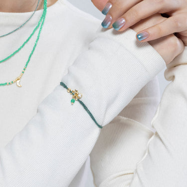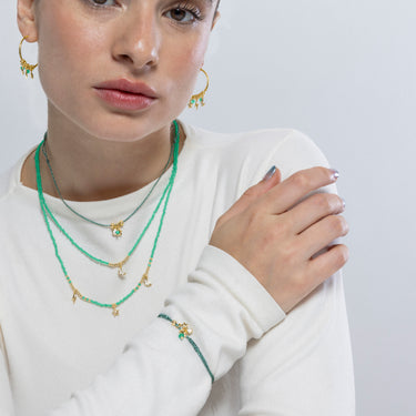 Pulseira de Prata de Lei 925 e Cristal Verde acabada em ouro amarelo de 18k - Estrela