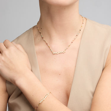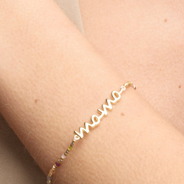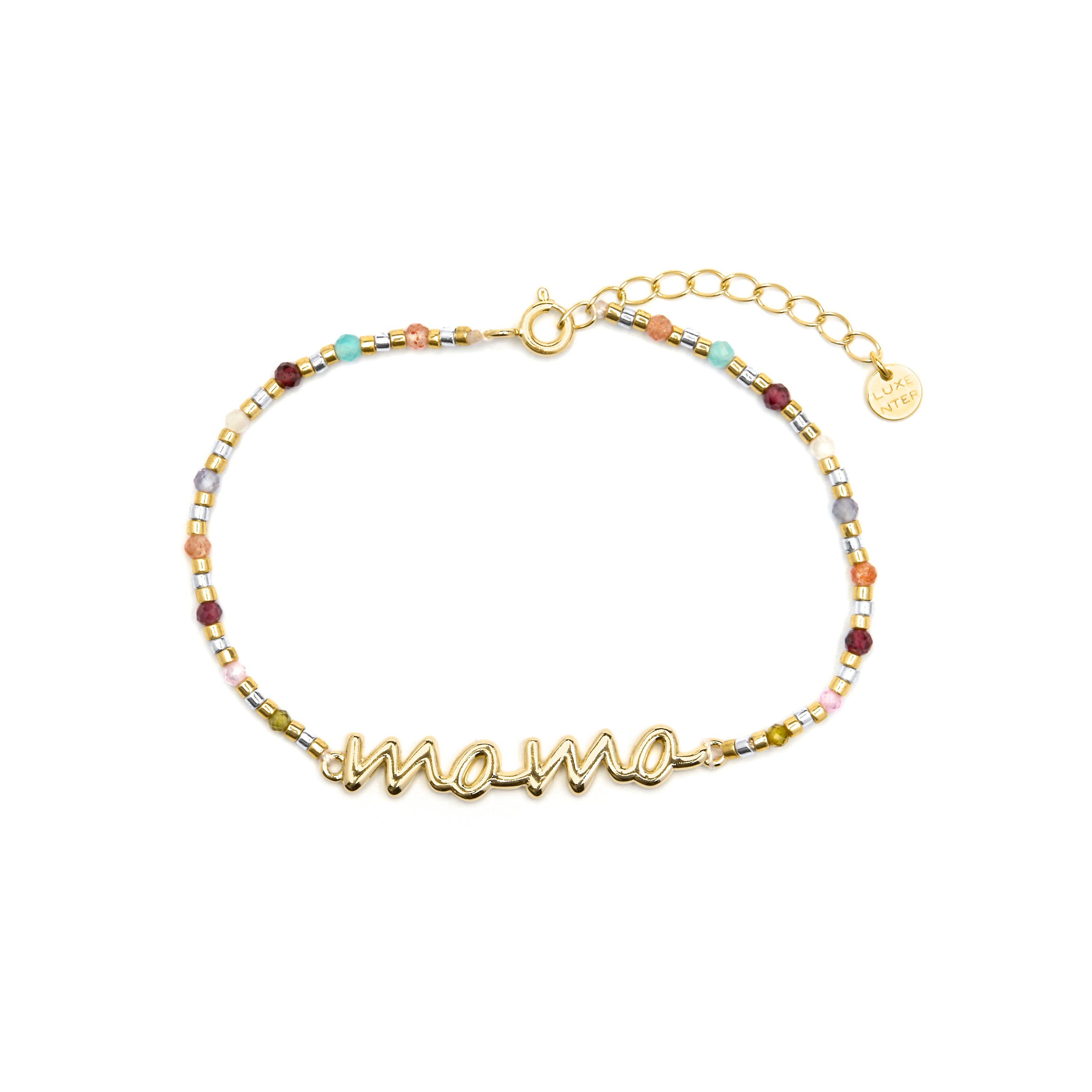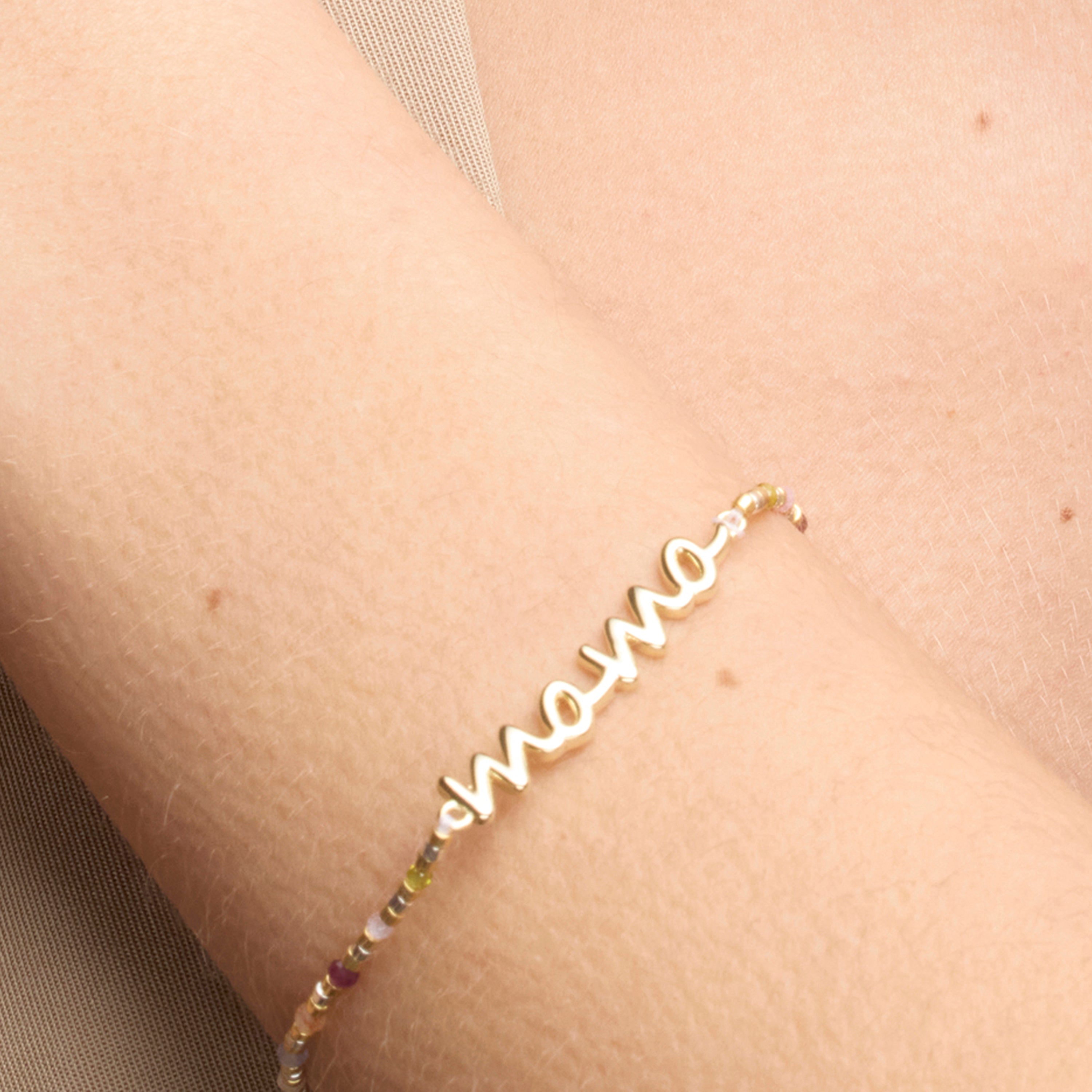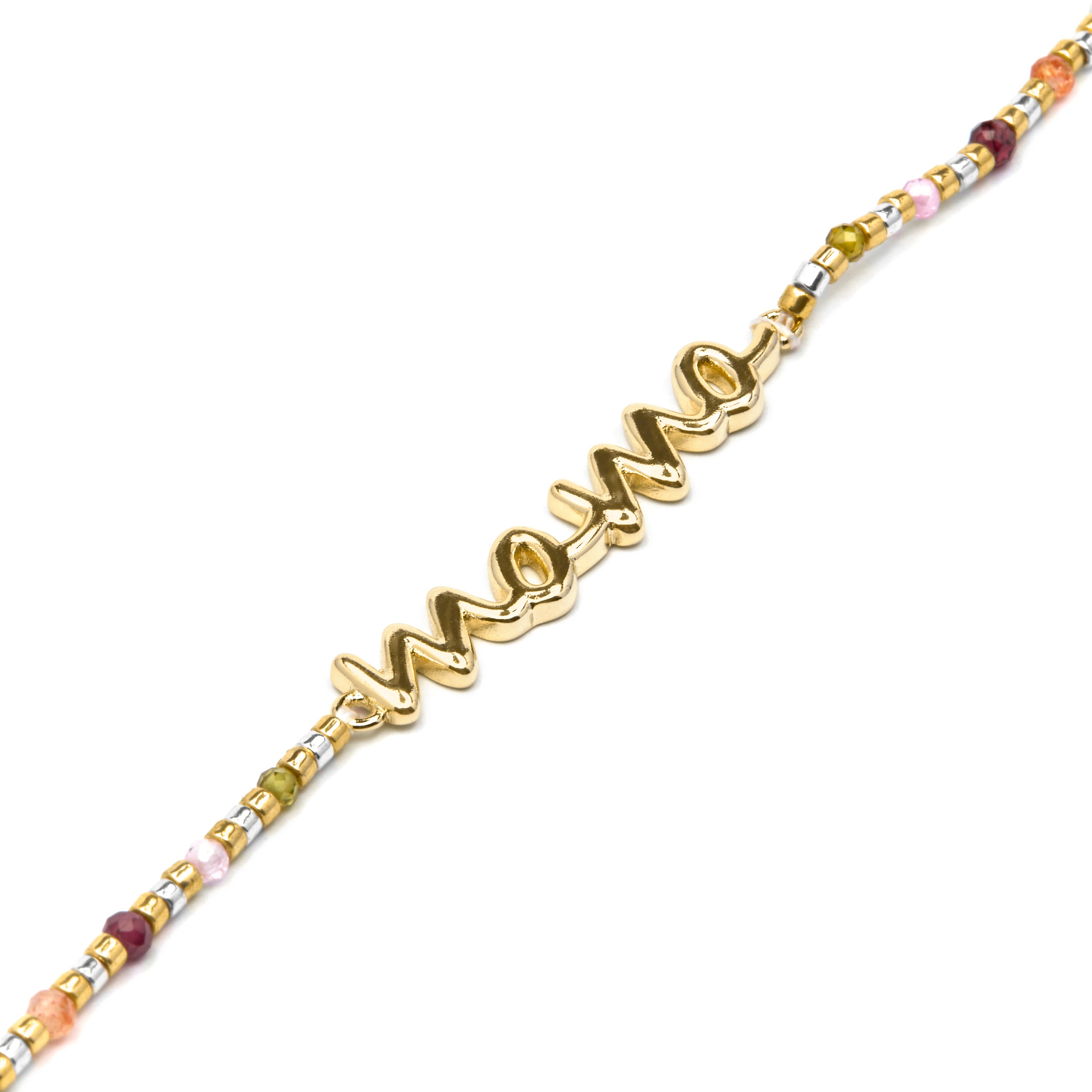 Pulseira Mama em Prata de Lei 925 e Cristal Multicolor com acabamento em ouro amarelo 18k